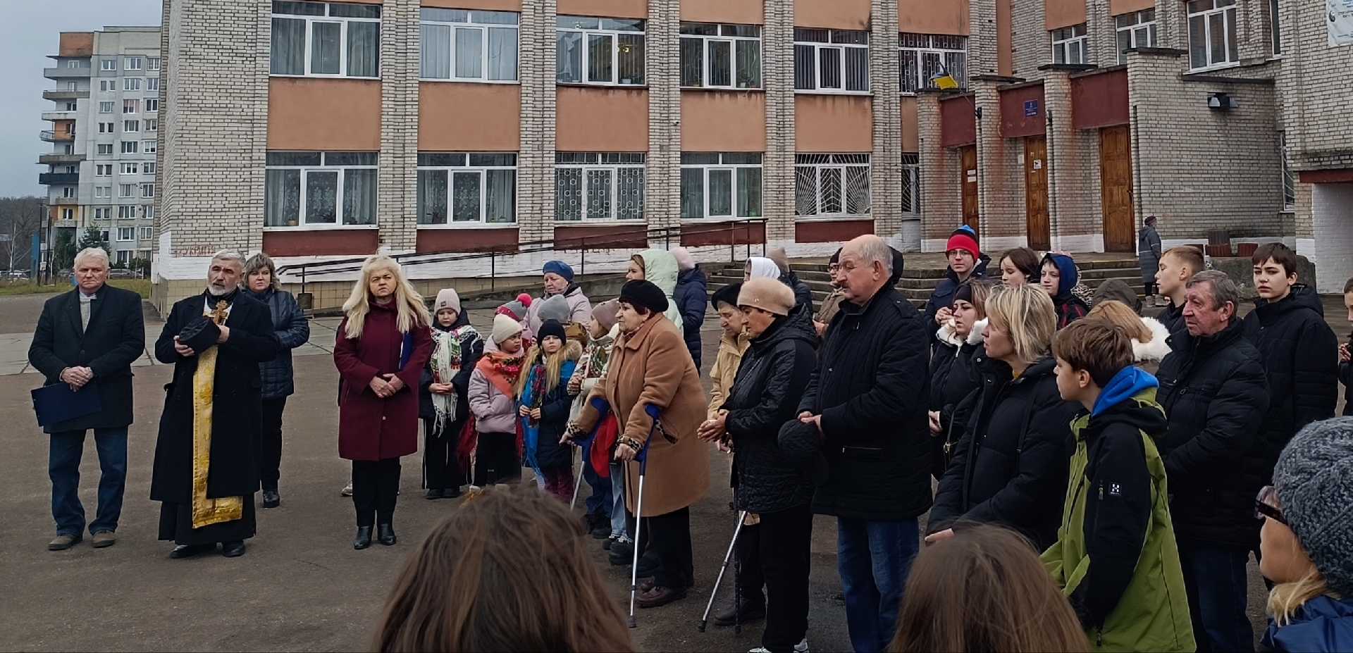 Отець Павло, настоятель Православної церкви України Ікони Почаївської Богородиці, освятив портрети Героїв – Романа Бурка, Євгена Проскуренка, які віддали найцінніше – життя, захищаючи рідну землю. Нагадав про обов’язок вічної і світлої пам’яті Небесних воїнів.