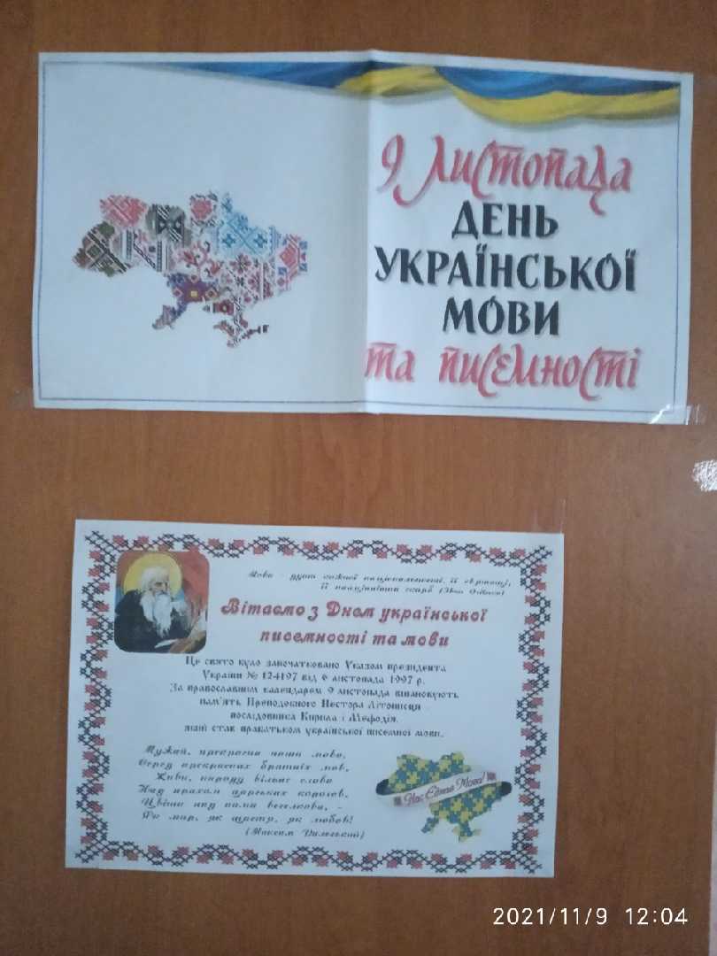 Для учнів початкової школи проведено бліц-вікторину про українську мову. У вестибюлі школи оформлено стенд з цікавою інформацією про становлення рідної мови. Зав.бібліотекою Світлана Швець також долучилася до написання диктанту національної едності.