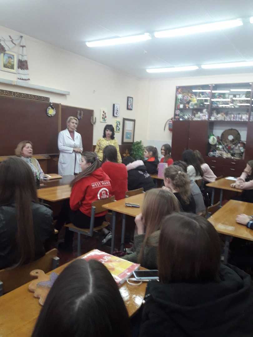 Практичним психологом Шкелебей Лесею Йосипівною та медичною сестрою Нагірною Надією Василівною була організована зустріч із завідувачкою Клініки Дружня до молоді на тему статевого виховання у 5-А та 6-А класах, а з учнями 10-А та 8-Б класів лікар Пелех Т.М. обговорювали питання профілактики ВІЛ/СНІДу