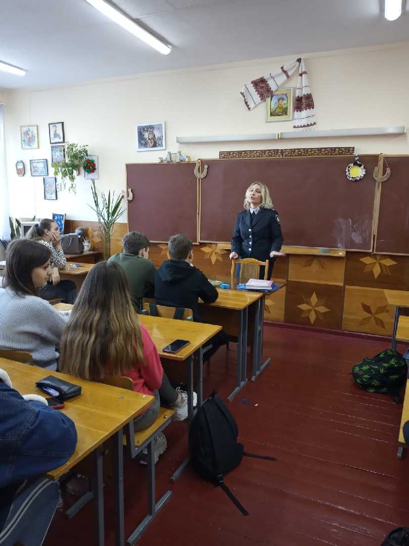 29.11.2019р. практичний психолог Шкелебей Л. Й. та соціальний педагог Лобащук О. Ю. організували зустріч з майором поліції Панасюк І. С. та учнями школи, з метою профілактики шкідливих звичок, проявів насилля серед однолітків та адміністративної відповідальності за свої проступки.