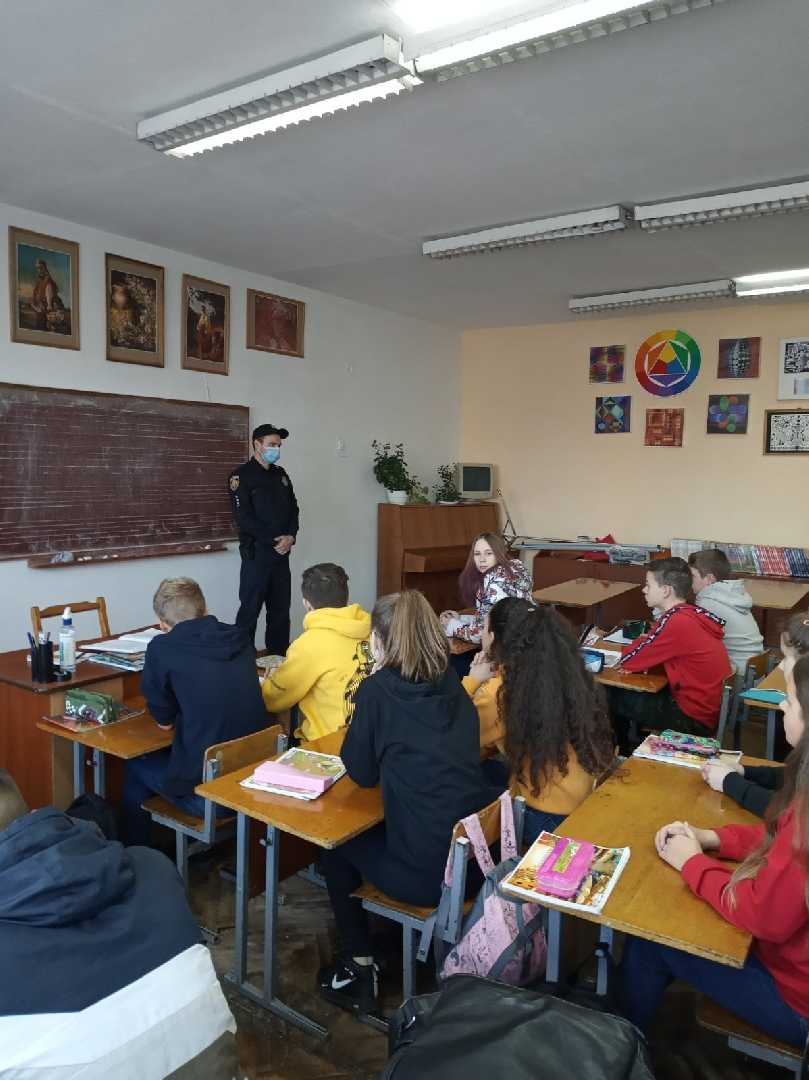 З метою попередження нещасних випадків, профілактики правопорушень, шкідливих звичок, насилля та булінгу відбулася зустріч 25.11.2020 р. учнів 4-Б, 6-В та 8-В класів з представником поліції Орисюком М. на тему «Про відповідальність підлітків за власні вчинки», яку організували і провели практичний психолог Шкелебей Л. Й. та соціальний педагог Лобащук О. Ю. Під час навчального діалогу школярі дізналися, яку відповідальність можуть нести їхні батьки та вони самі, за протиправні дії. Також було проведено індивідуальну роботу з учнями «групи ризику» та дітьми, які перебувають на обліку «посиленої педагогічної уваги».