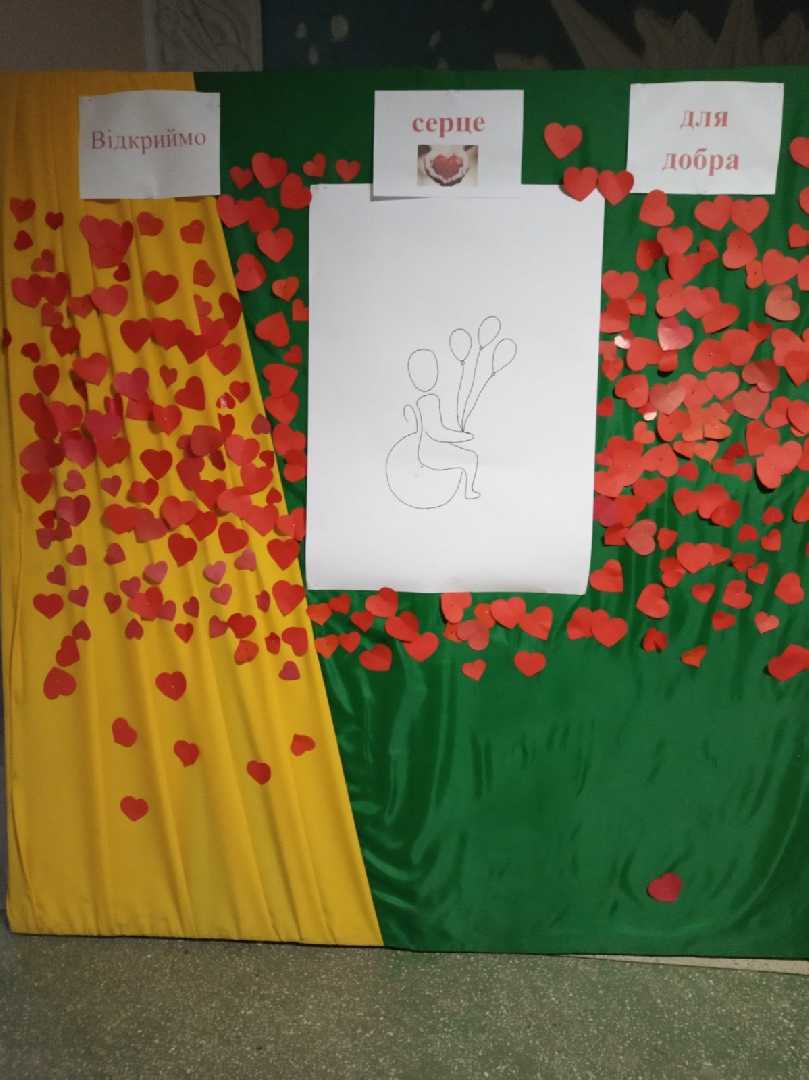В нашій школі пройшла акція «Відкриємо серце для добра», в якій прийняли участь учні початкових класів. Кожна дитина самостійно виготовила сердечко і прикріпила в знак поваги і дбайливого відношення до людей з особливими освітніми потребами.