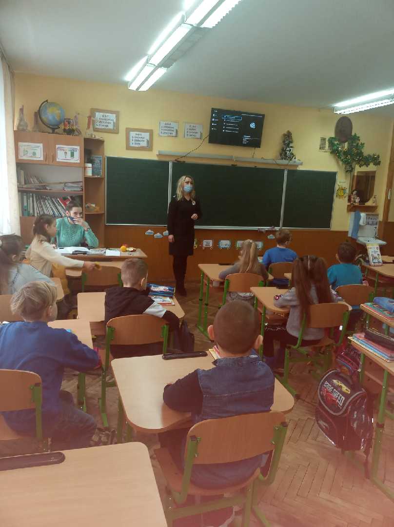 4 березня старший інспектор ЮП Червоноградського РВП майор поліції Ірина Панасюк провела з учнями 3-Б класу виховну бесіду щодо прав та обов'язків учнів.