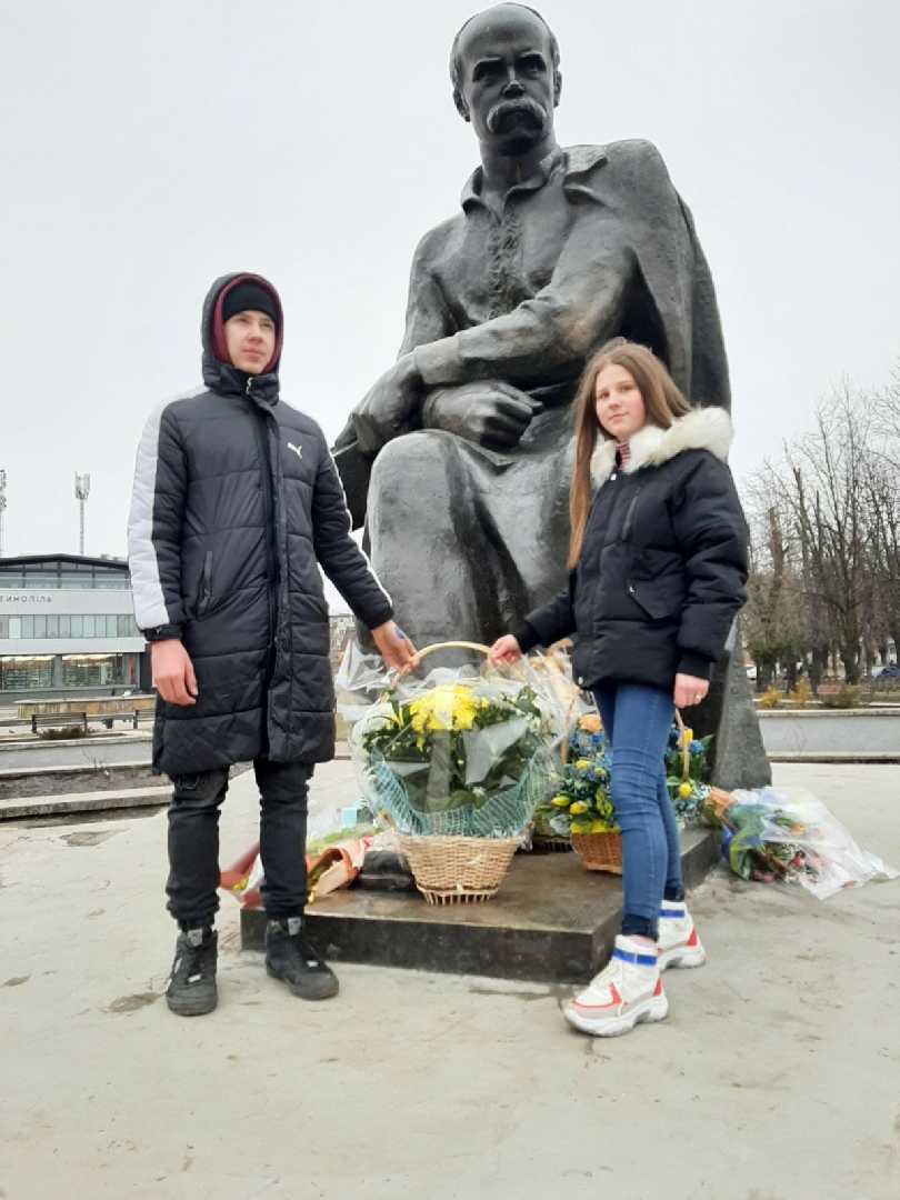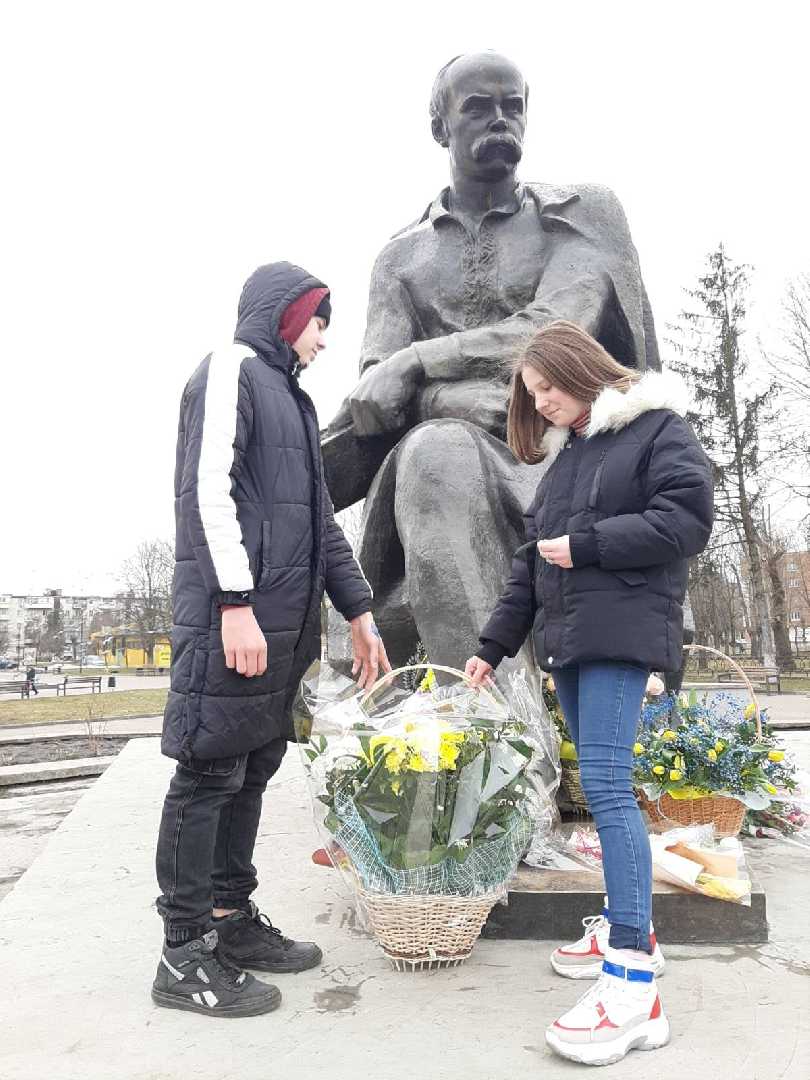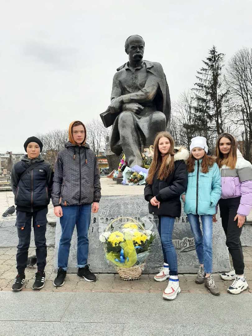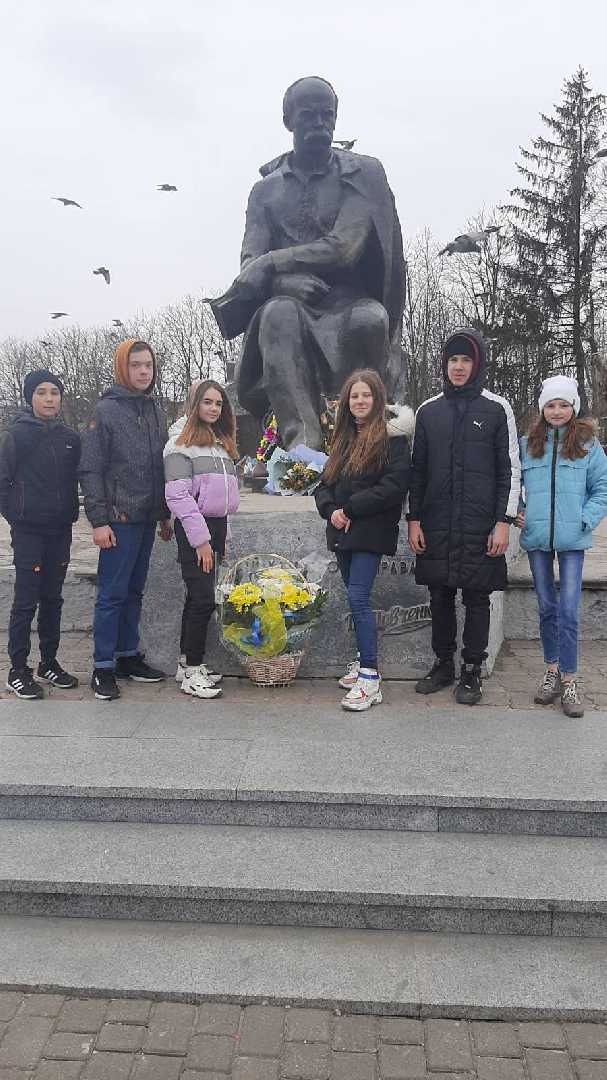 Учні 8-Б класу та вчителі прийняли участь в урочистій церемонії покладання квітів до пам’ятника поета.