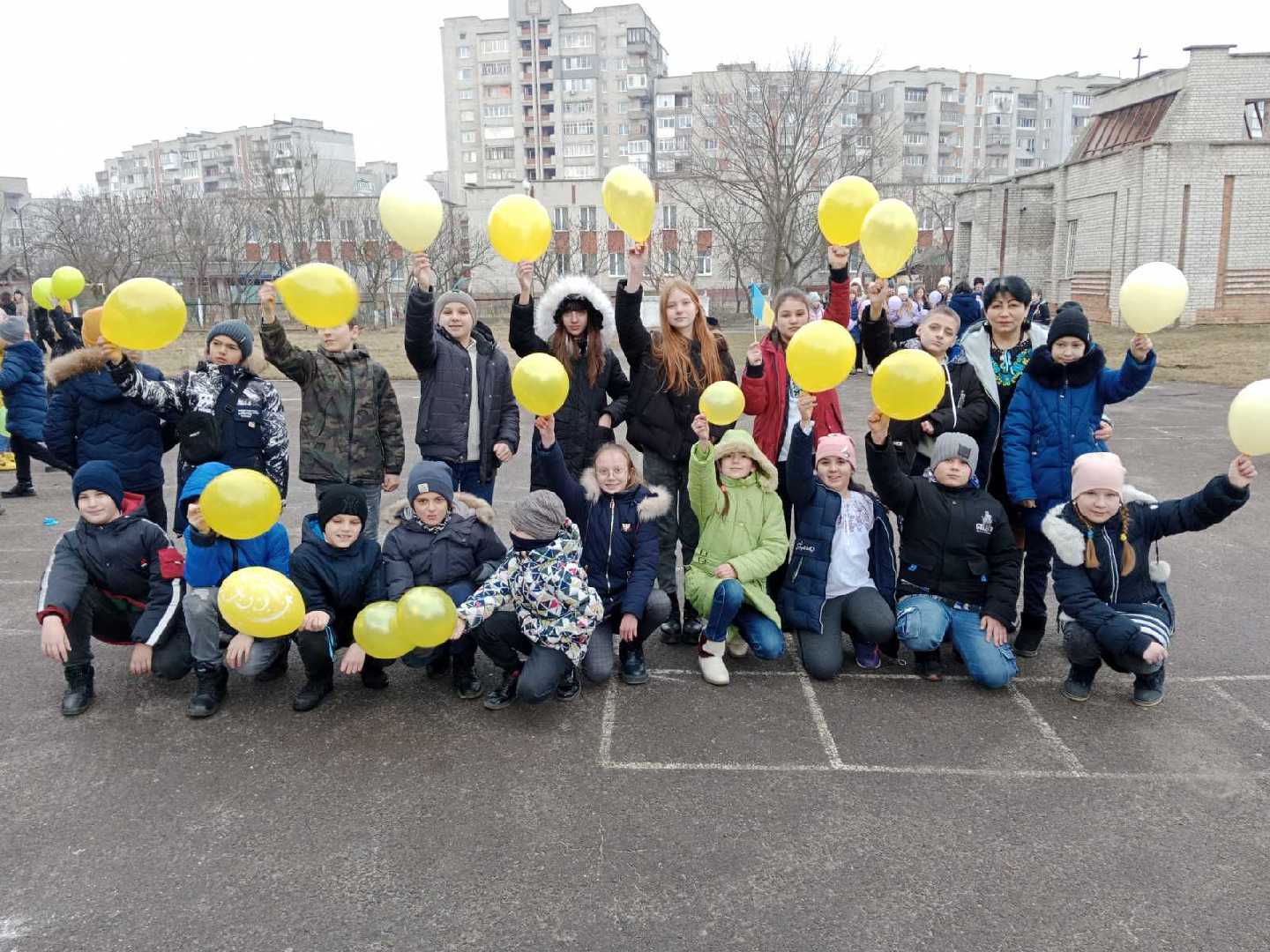 Педагоги, учні прийшли у вишиванках, з державною символікою. Підняті вгору прапорці, стрічки, кульки підсилювали атмосферу людського співпереживання, небайдужості, безмежної любові і відданості рідній Україні.