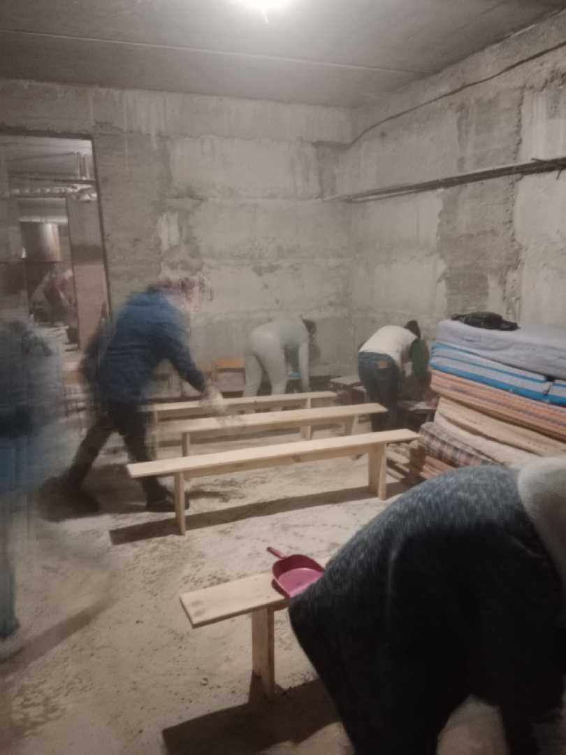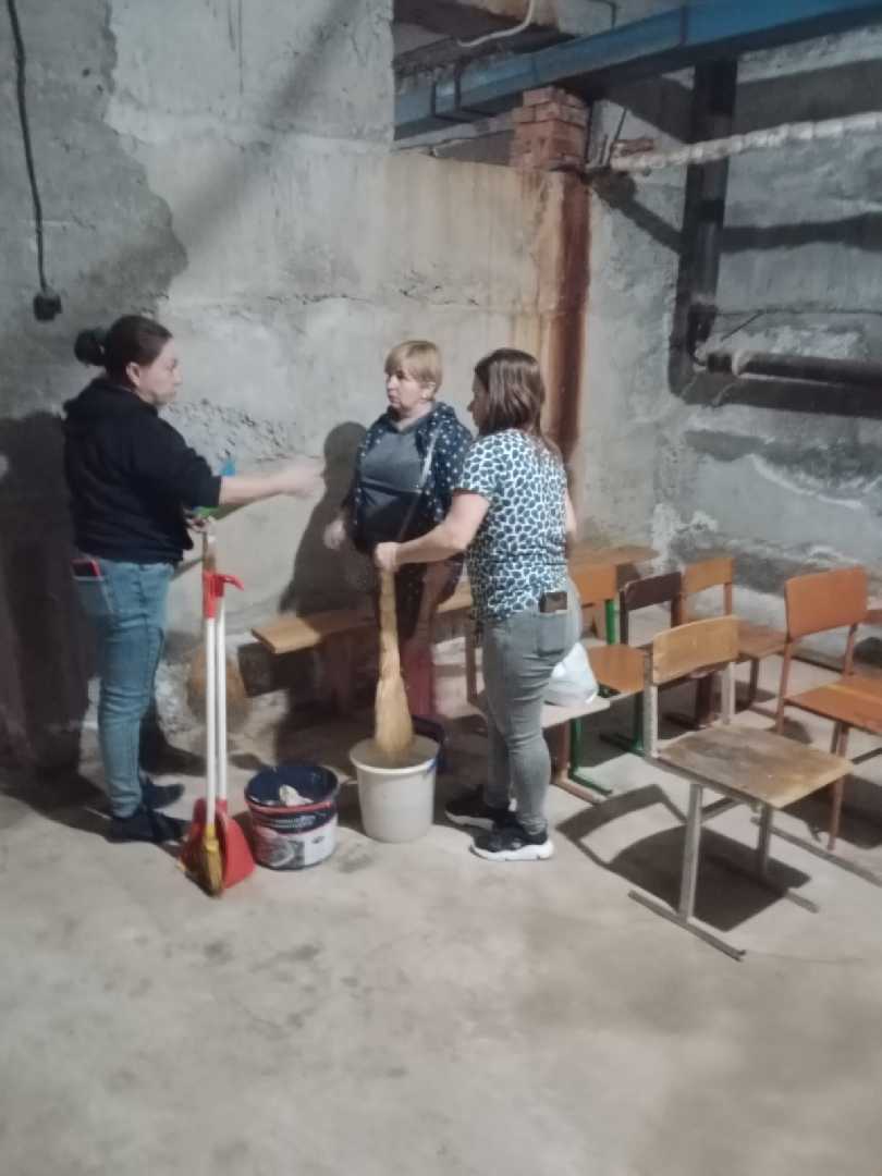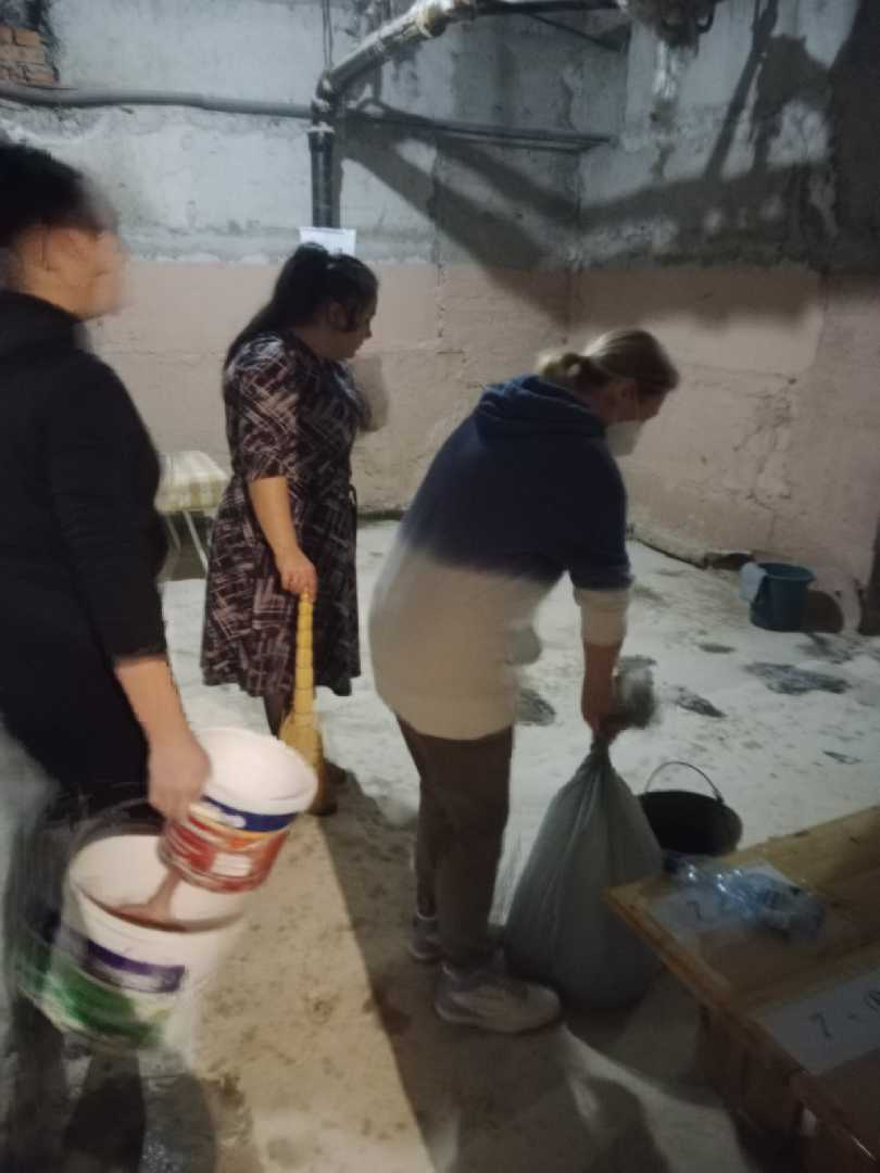 Поки осінні канікули, шкільна родина Гімназії 3 працює над покращенням облаштування укриття. Завзято і старанно взялися до роботи вчителі, батьки, старшокласники. Спільна праця зробила неможливе можливим. Побілені стіни, виметена, помита, застелена підлога, акуратно розставлені лавки, лежаки, поповненні запаси води приємно вражали.