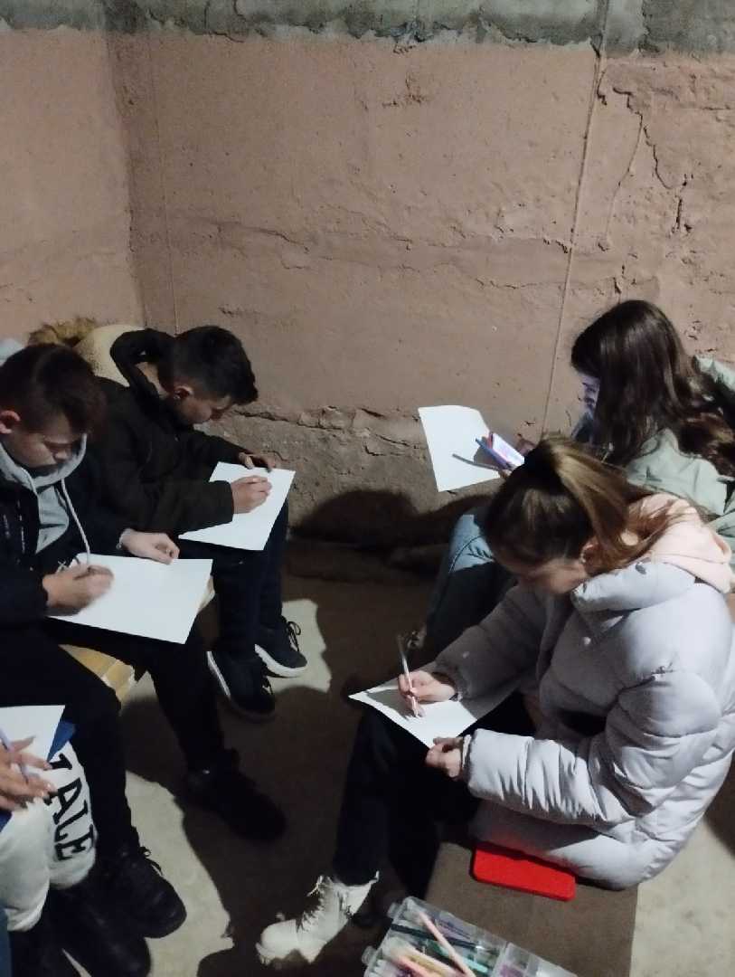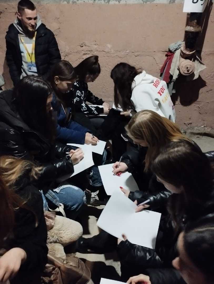 На жаль, пролунала повітряна тривога та всі змушені були перейти в укриття. Але ніхто не розгубився, тому завершили зустріч вже в екстремальних умовах, що допомогло дітям відволіктись від хвилювань.