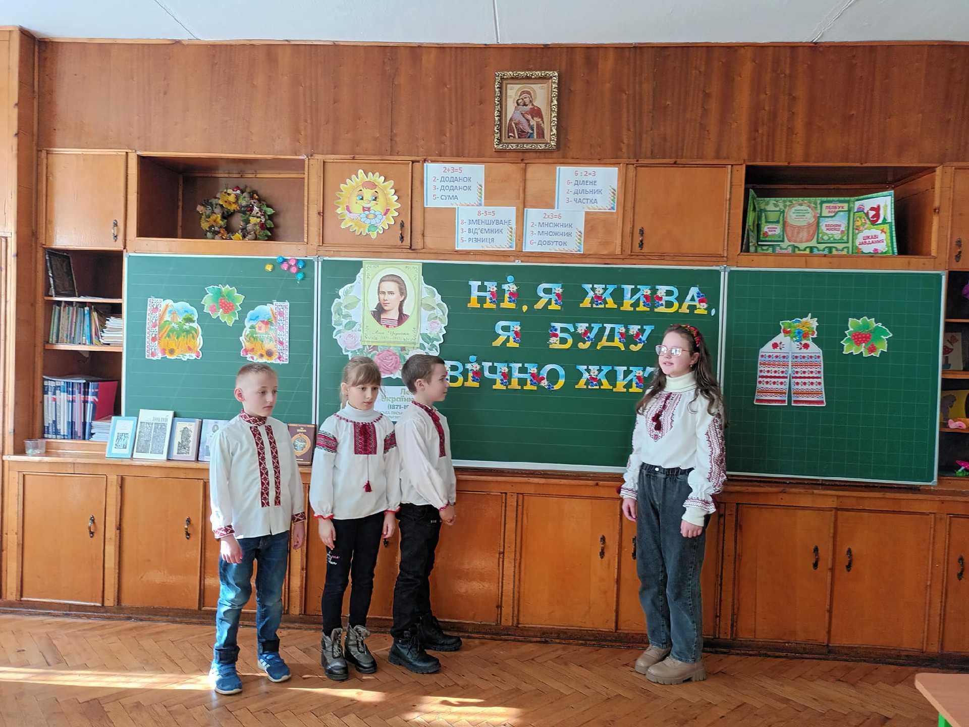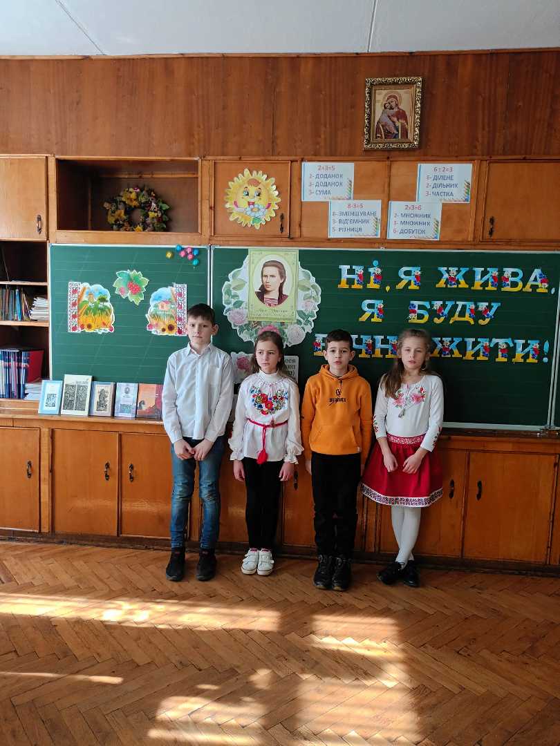 Літературне свято"Ні,я жива,я буду вічно жити" відбулося в 4-а класі .Школярі з цікавістю розповідали про життя і творчість великої Лесі Українки,декламували та інсценізували вірші,співали пісень на слова поетеси.Велика вдячність кл. керівнику Піхоцька Ольга та вчителю музики Ольга Пляцко за підготовку змістовного свята поезії! Ну і як же без бібліотекаря Світлана Швець,яка представила твори Лесі Українки, що є в гімназійній книгозбірні,звернувши увагу на казки поетеси.
