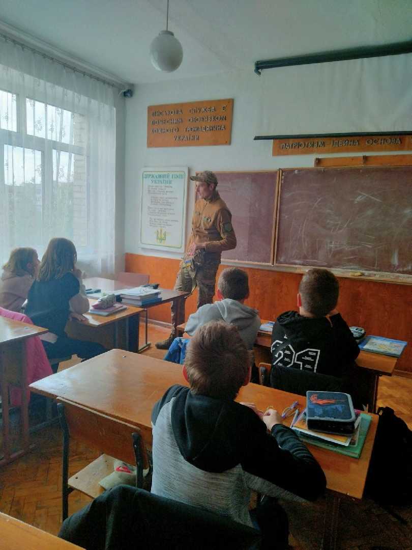Зустріч з добровольцями завжди у школі бажана і очікувана. Ось і цього разу учні 6-Г класу мали можливість поспілкуватися з Нагірним Андрієм. Цікаві невигадані історії, повчальні, але ненав'язливі роздуми, щирість про побачене, почуте зворушили не одне дитяче серце.