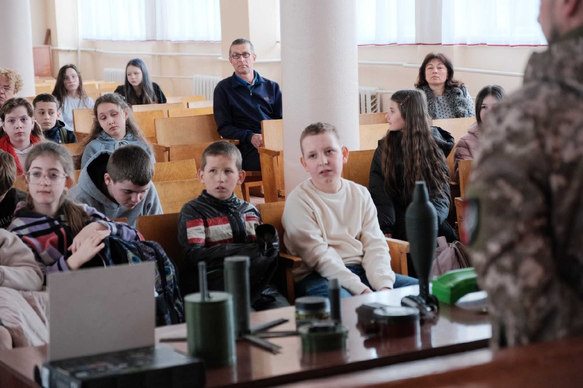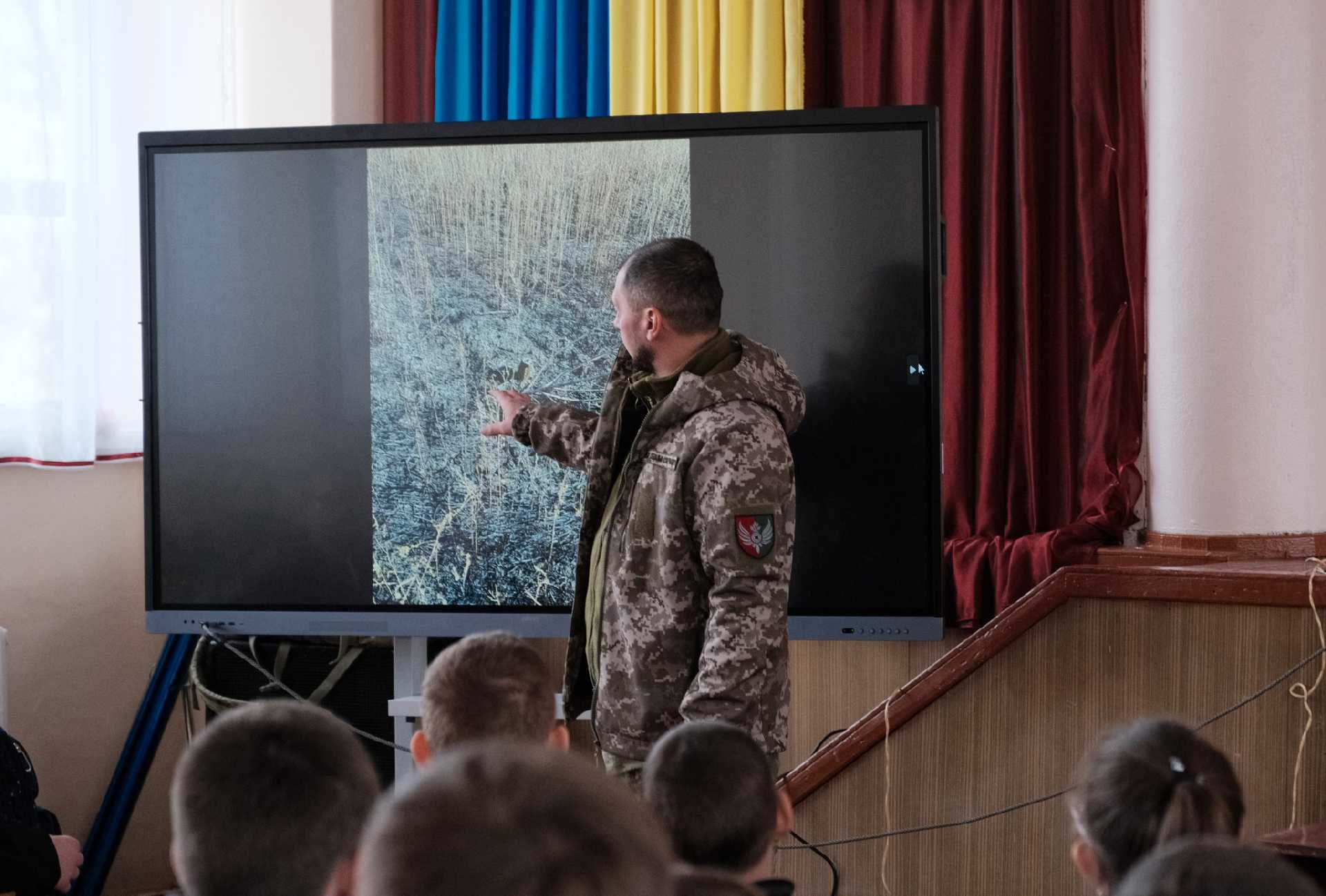 Сапер Роман Дах приїхав, щоб показати школярам, з чим стикається мирне населення після деокупації. Він приніс з собою макети мін, боєприпасів та найважливіше, свої знання і досвід. Він пояснив, як виглядають вибухонебезпечні предмети, де їх найчастіше знаходять, і що ні в якому разі не можна робити, якщо побачиш щось підозріле.