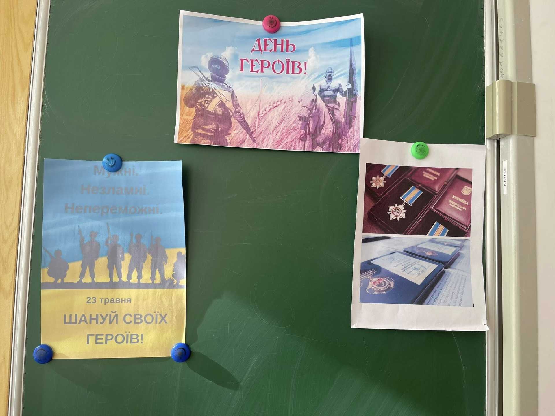 У 8-А класі (класний керівник — Бірук Федір Степанович) на виховній годині діти загиблих Героїв -Віктора Кічуна та Сергія Зеленюка принесли державні нагороди своїх батьків і розповіли про їхнє життя, шлях воїнів та жертовність.