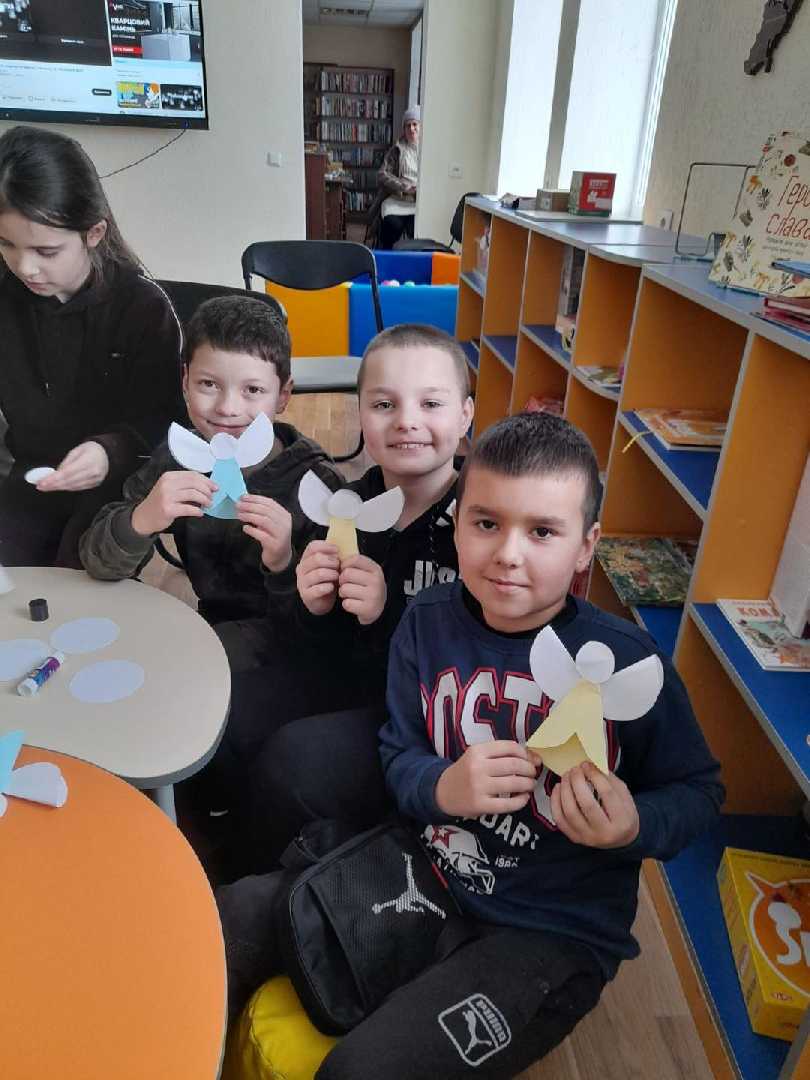 Захід для наших учнів відбувся у дитячій міській бібліотеці, де діти власноруч створили білих паперових ангелів — символ світлої пам’яті, болю та вдячності. Кожна витинанка — це маленький знак великої поваги до тих, хто загинув, відстоюючи українську державність.