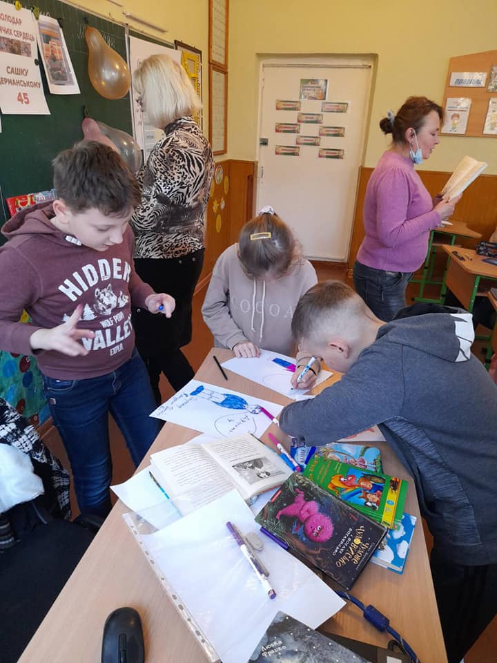 В останній день осені бібліотекарі дитячої бібліотеки філії 8 разом зі шкільним бібліотекарем провели літературну зустріч ученів 4-Б класу з письменником Олександром Дерманським , познайомили дітей з творами письменника та провели різноманітні конкурси. Учні привітали улюбленого митця з ювілеєм.