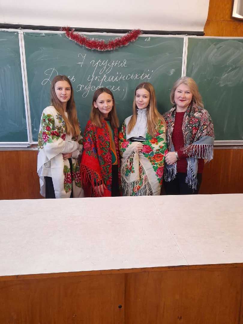 Які ж красиві наші дівчата в українських хусточках! Учні та вчителі долучились до святкування - прийшли у яскравих українськиї хустках.