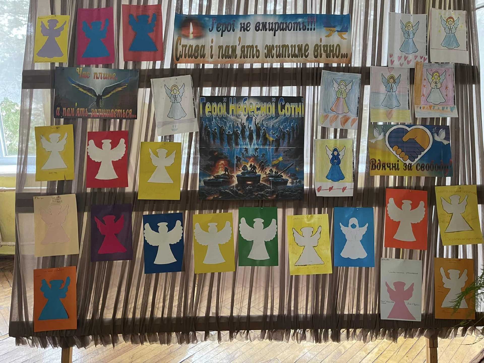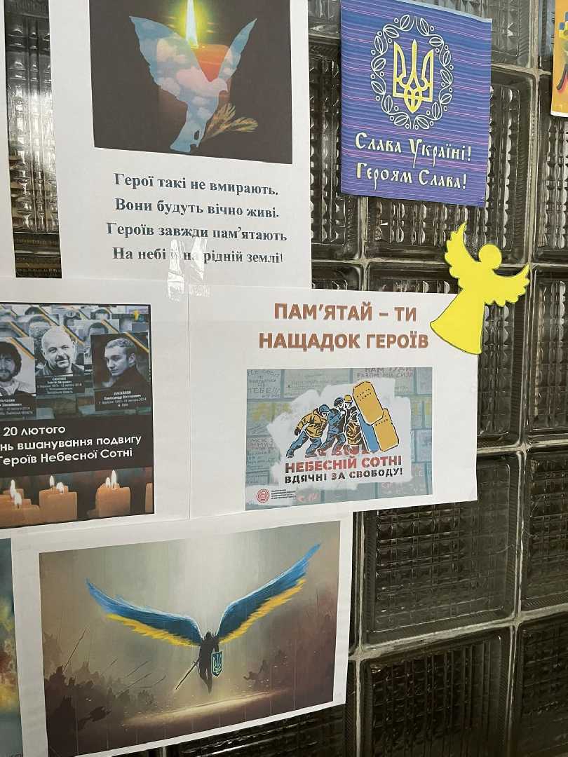 У бібліотеці гімназії 4 оформлено книжкову інсталяцію до Дня пам’яті Героїв Небесної Сотні «Сотня Небесна в небо знялася».