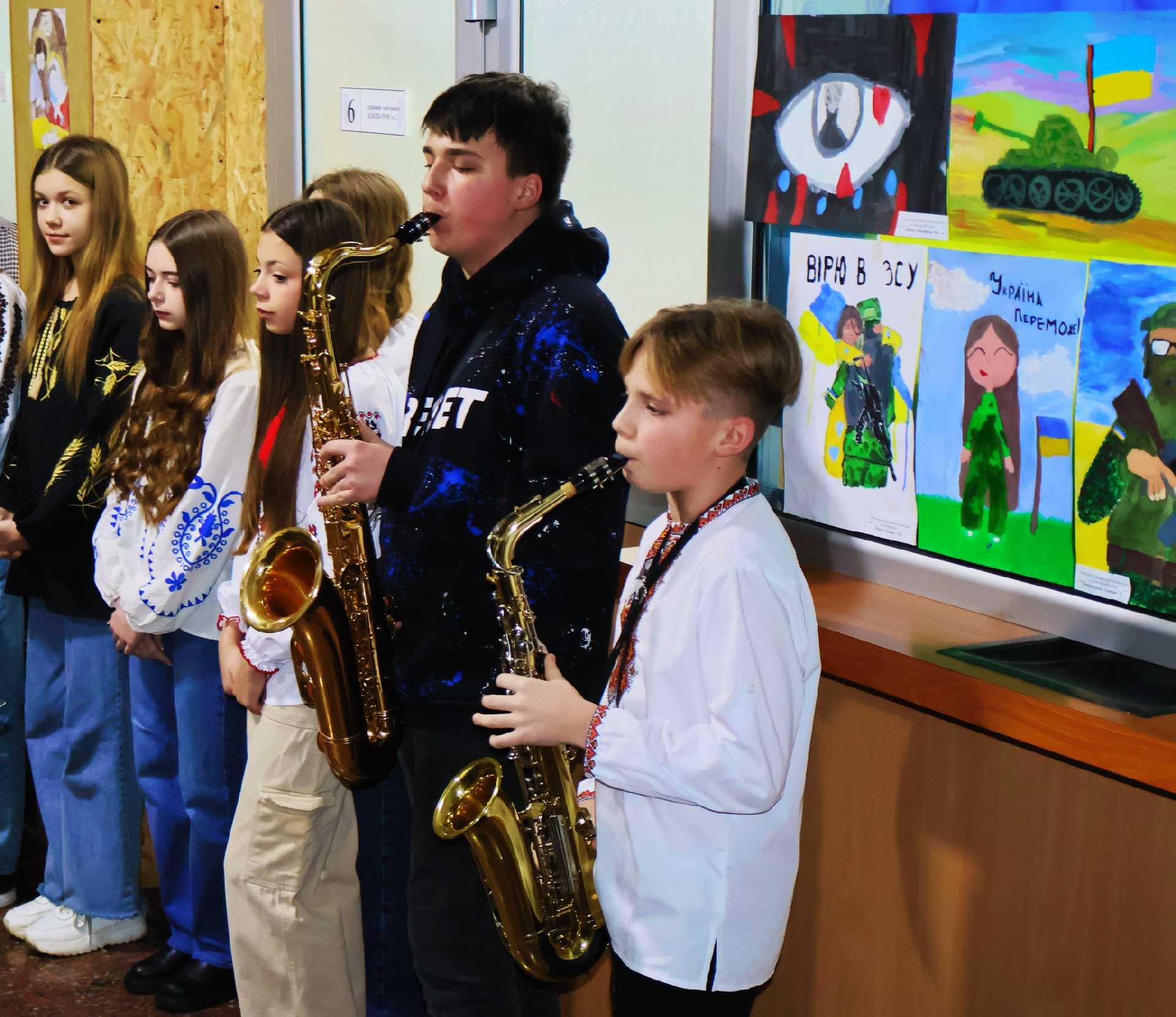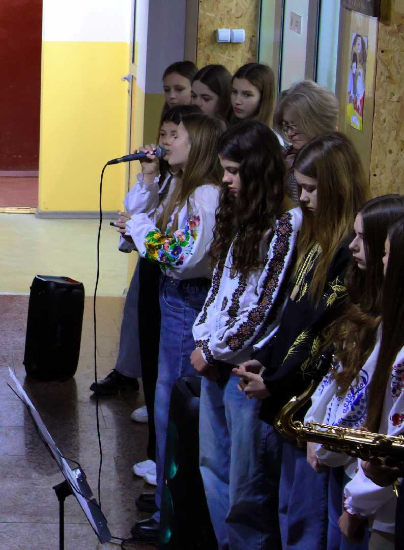 На завершення свого виступу, учні 4 гімназії подарували військовослужбовцям жовто-блакитні сердечка із побажаннями швидкого завершення війни та Перемоги, аби усі живі і здорові повернулись до своїх домівок.