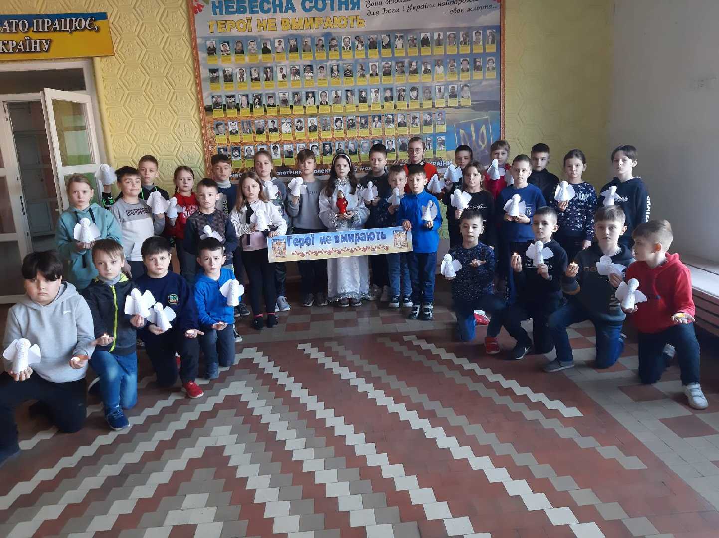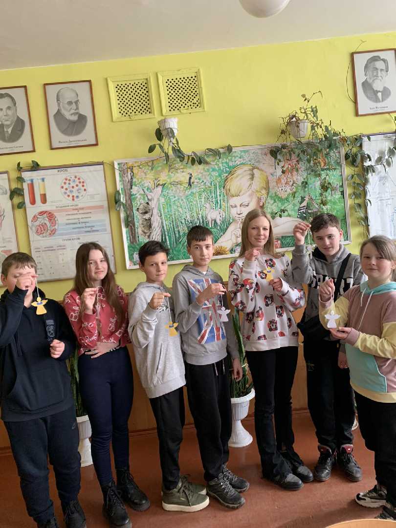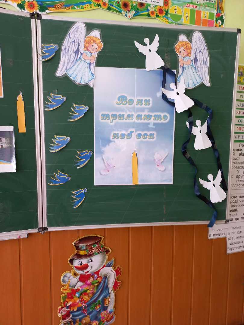Щорічно проводимо тиху акцію "Ангели пам'яті", на якій традиційно паперовими янголами вшановуємо пам'ять про захисників України різних часів. Ми повинні пам'ятати про героїв Крут, про Голодомор, про героїв новітніх часів - наших захисників і про Небесну Сотню. Десятки паперових ангелів розвісили на деревах біля гімназії наші учні в пам'ять про загиблих борців. Хай пам'ять про героїв України живе вічно.