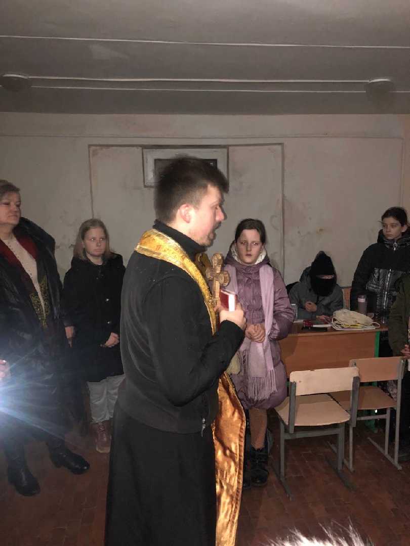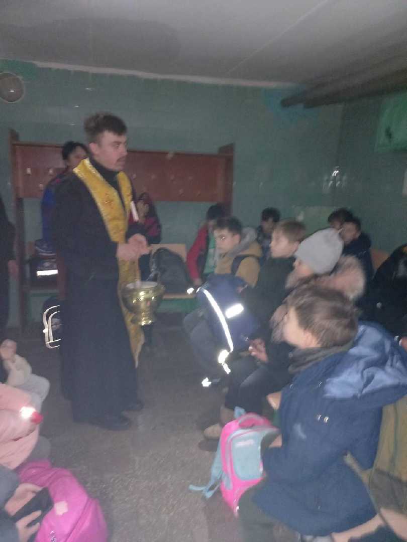 Гімназія.Відсутня електроенергія.Сигнал повітряної тривоги.Укриття. А наші діти колядують, щедрують,прославляючи народження Божого Сина. І з нами разом отець Августин,який окропляє Свяченою водою, благословляє на успішне навчання під мирним небом України. Все буде Україна!