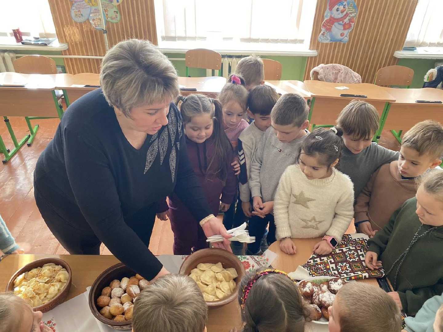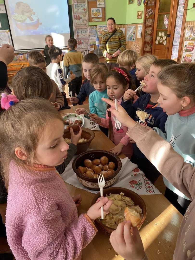 Учні 1 класу (класний керівник Грицаюк О. Л.) сьогодні знайомились з давніми звичаями, піснями. Розгадували ребуси, грали ігри . А яке українське свято без вареників і пампухів