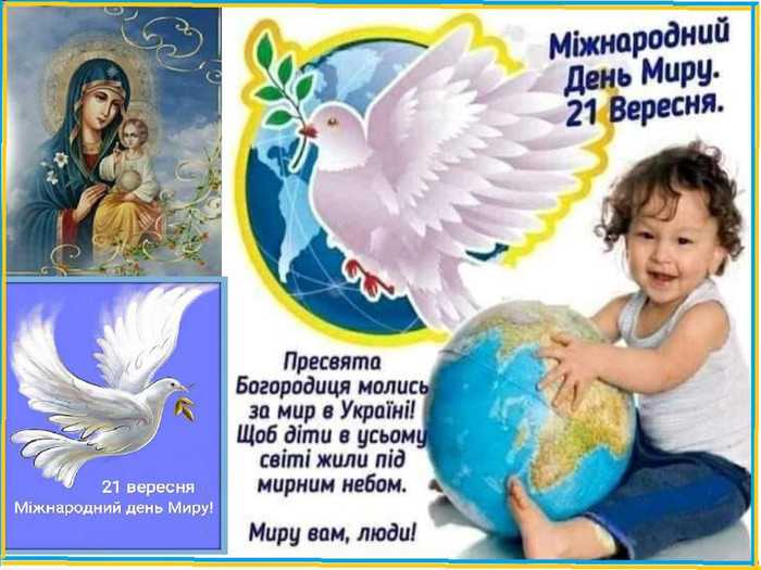 У Міжнародний день миру бажаємо , щоб навіть тінь зла не торкнулася ваших будинків, над головою синіло мирне, спокійне небо, всі неприємності закінчилися!