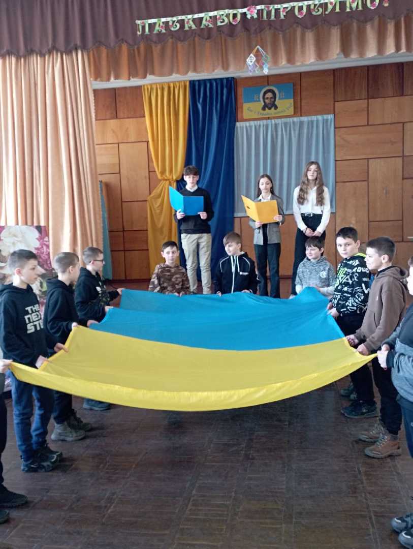 Цьогоріч виповнюється 158 років з дня першого публічного виконання Державного Гімну України. У нашій школі кожного дня звучить Гімн України, який нагадує нам хто ми і чийого роду. Доля гімну - велична, бо в ньому втілена споконвічна мрія, здобути волю, виражена незламна віра у відродження України. Трагічна доля, бо понад століття пісню-гімн переслідували, вбивали, забороняли. Зараз коли нові герої воюють за територіальну цілісність нашої країни, гімн має особливе значення для всіх і є тією духовною ланкою, що єднає нас із попередніми поколіннями борців за свободу. Учні 6-го та 7-х класів долучилися до заходу присвяченому до Дня Гімну України.