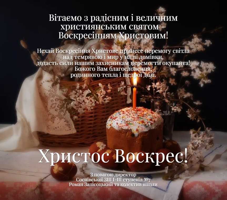 Вітаємо з прийдешнім радісним і величним християнським святом – Воскресінням Христовим! Нехай Великодні дзвони принесуть у Ваші домівки радість і надію, щастя і міцне здоров’я, наповнять серце добром і милосердям.