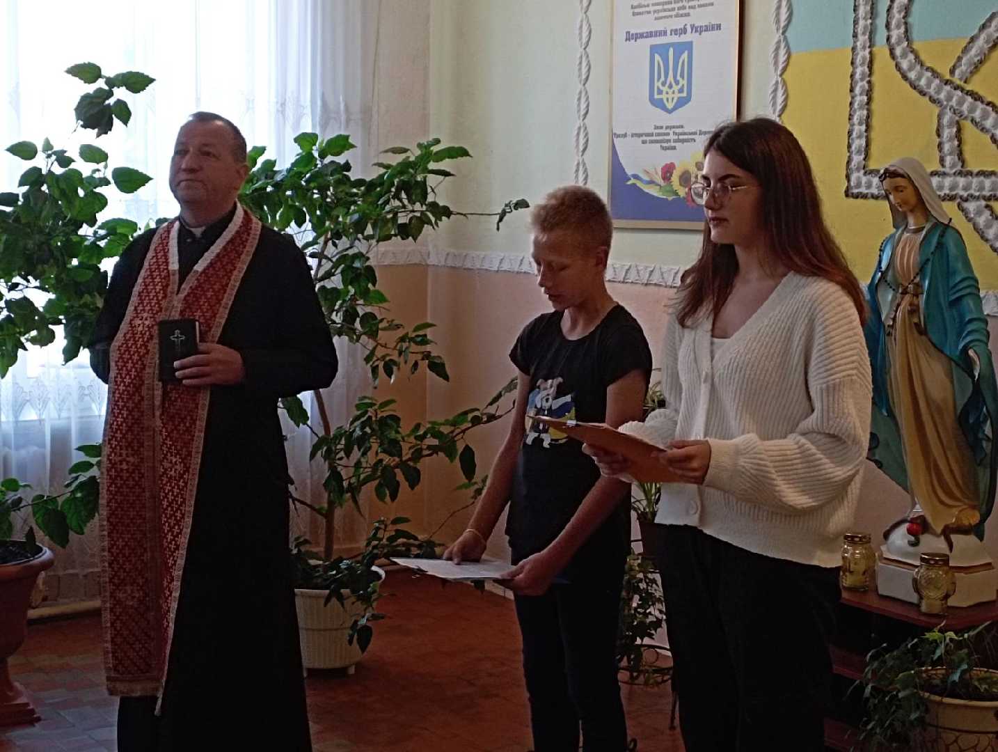 Вшанувати пам’ять полеглих героїв нашого краю зібралися батьки наших героїв, вчителі та учні. У спільній молитві з отцем Зиновієм настоятелем Української Греко-Католицької Церкви Верховних Апостолів Петра і Павла міста Соснівка згадали всіх захисників, які своїми спинами заступили нас від окупантів.