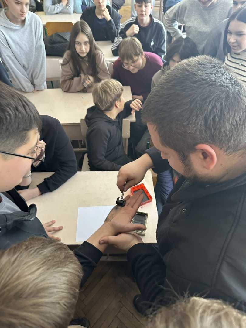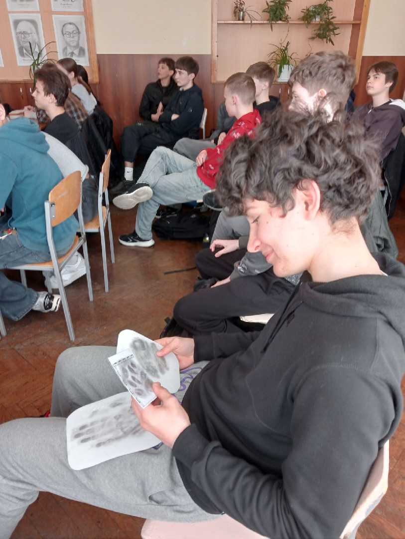 Окрім цього, учні взяли активну участь у відборі дактилоскопічних слідів із різних поверхонь, а також у знятті відбитків пальців рук на аркуші паперу.