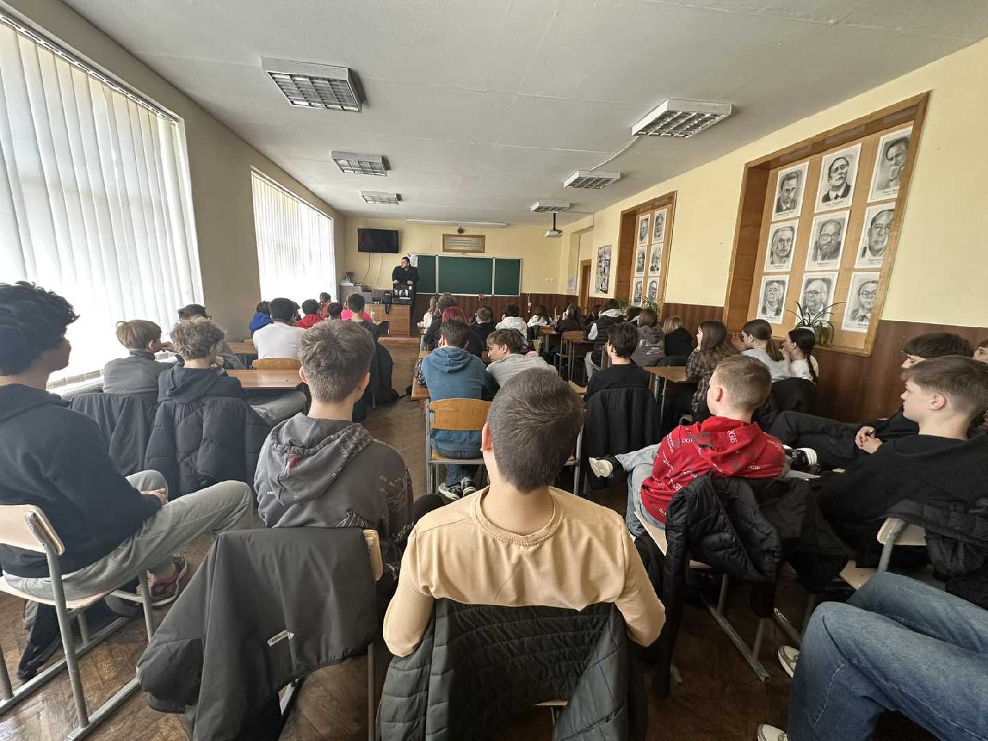 Інспектором сектору СОБ Шептицького РВП ГУНП у Львівській області старшим лейтенантом поліції Анною Мікало запрошено спеціаліста-криміналіста Гука Богдана для проведення пізнавального заходу з метою ознайомлення учнів 8-9 класів із особливостями його професійної діяльності.
