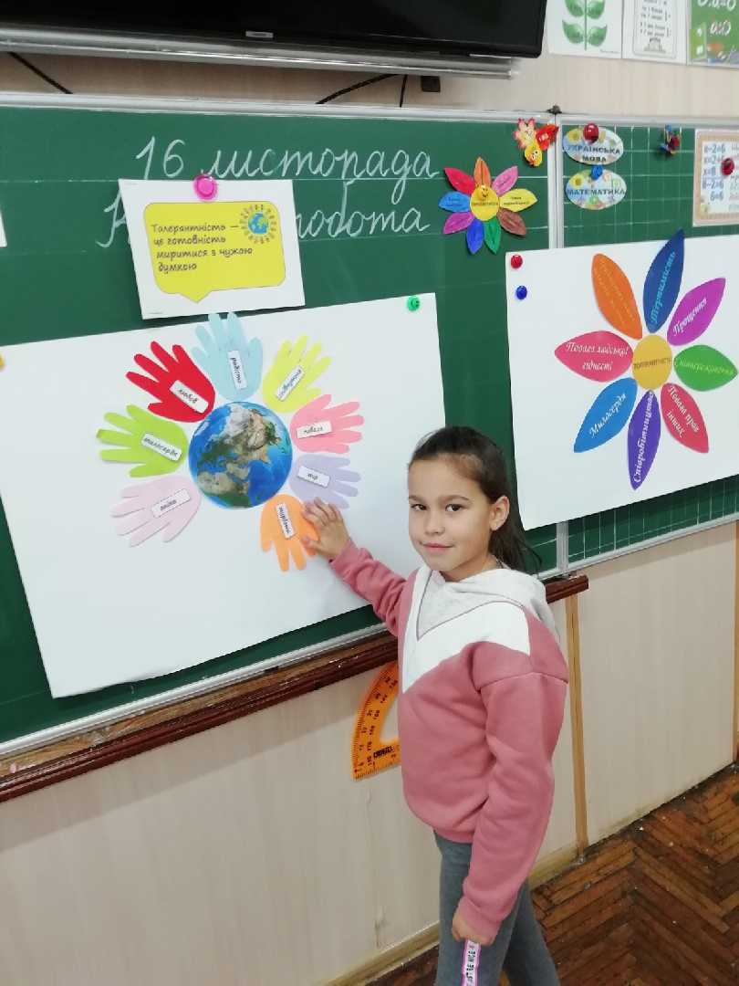 До Міжнародного дня толерантності учні 3-А провели акцію "Квітка толерантності" та учні 3-Б класу - "Усі ми різні, усі ми рівні". Кожен із школярів зміг висловити і записати своє розуміння цього поняття, створивши квітку толерантності. Яскрава і різнобарвна, вона прикрасила похмурий ранок і нагадала усім про такі прості, але надзвичайно важливі істини. Будьмо толерантними!