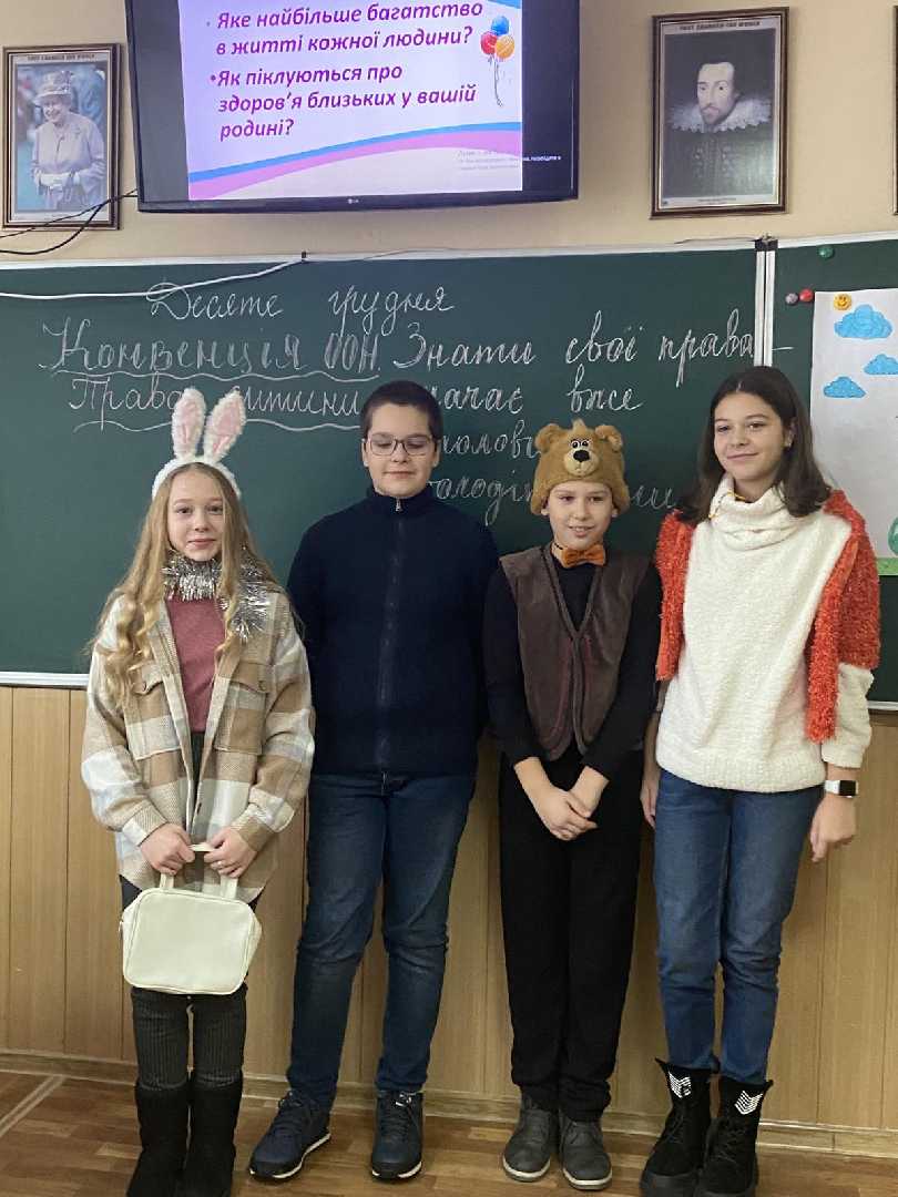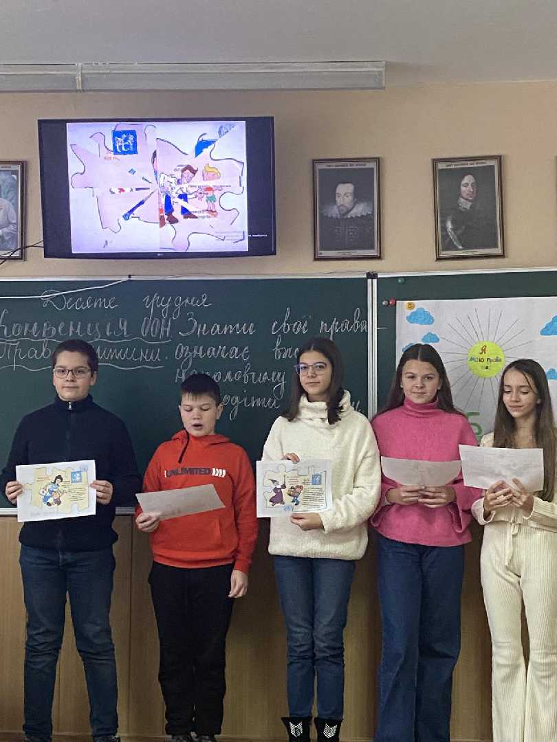 До Міжнародного дня прав людини учнів 6-Б класу (кл.кер.Мисак І.Р.) підготували виховний захід "Права дитини в Конвенції ООН".