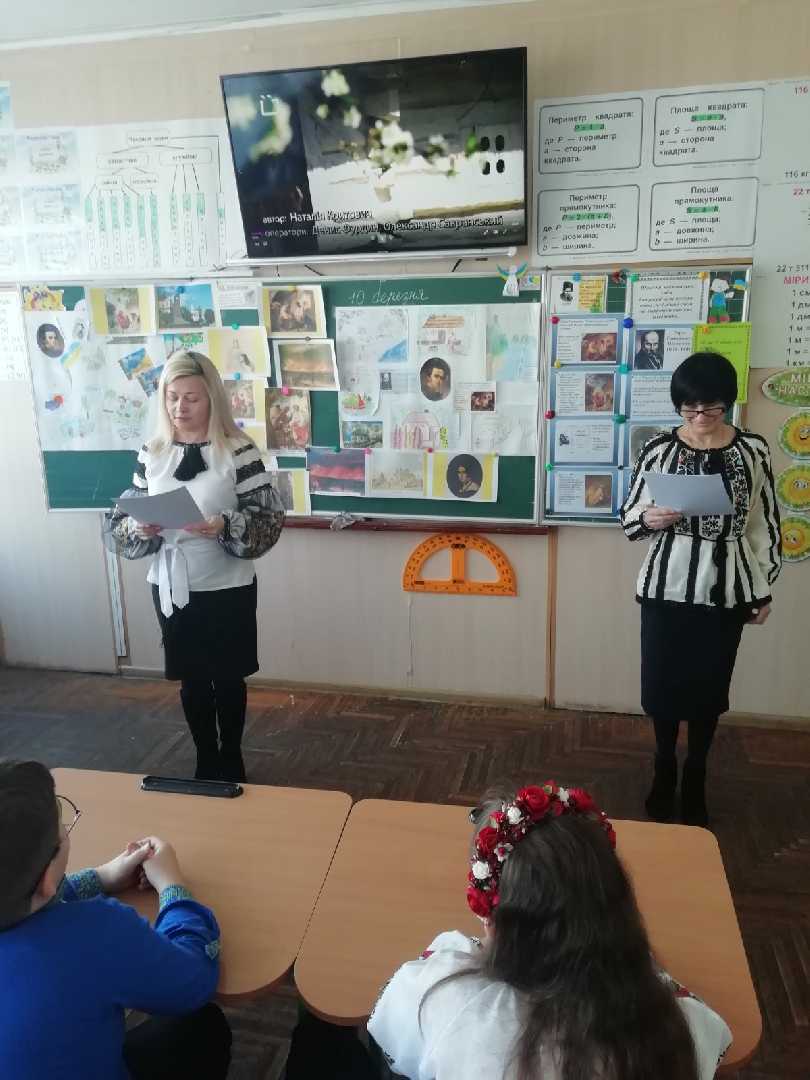 Бібліотекарі школи Барнасюк Світлана Григорівна та Батюх Надія Михайлівна провели спільно з учнями 4- Б кл. (кл.кер.Гартенберг Галина Василівна)) виховний захід "В гостях у Тараса Шевченка". Юні гімназисти декламували вірші, співали пісень, показали інсценізацію та переглянули цікаві відео про життя Кобзаря.