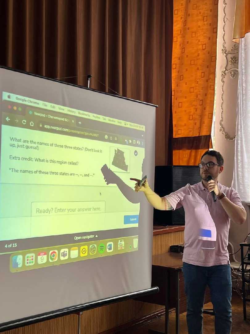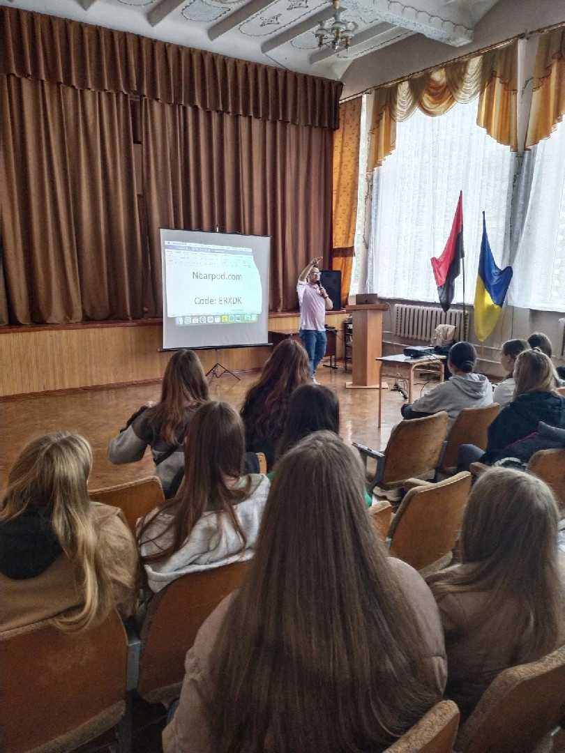 Вивчаючи мову важливо пам'ятати, що найвищим благом є можливість комунікації, активного спілкування та реалізація соціокультурних компетенцій пов'язаних з цим процесом. Учні 7-9 класів гімназії №8 мали унікальну нагоду поспілкуватися із Jacob McGrew - в минулому волонтером Корпусу Миру, а зараз викладачем університету в Києві, якого запросила наша колишня учениця, флексерка та волонтерка Корпусу Миру- Анна Кічула. Засобом мобільних додатків учні мали інтерактивну комунікацію, лекторій, ігри та головне - підвищили власну мотивацію, що дозволить надалі успішно вивчати англійську мову, бути активним у пошуках безпосередньої взаємодії з іншими учасниками навчального процесу.