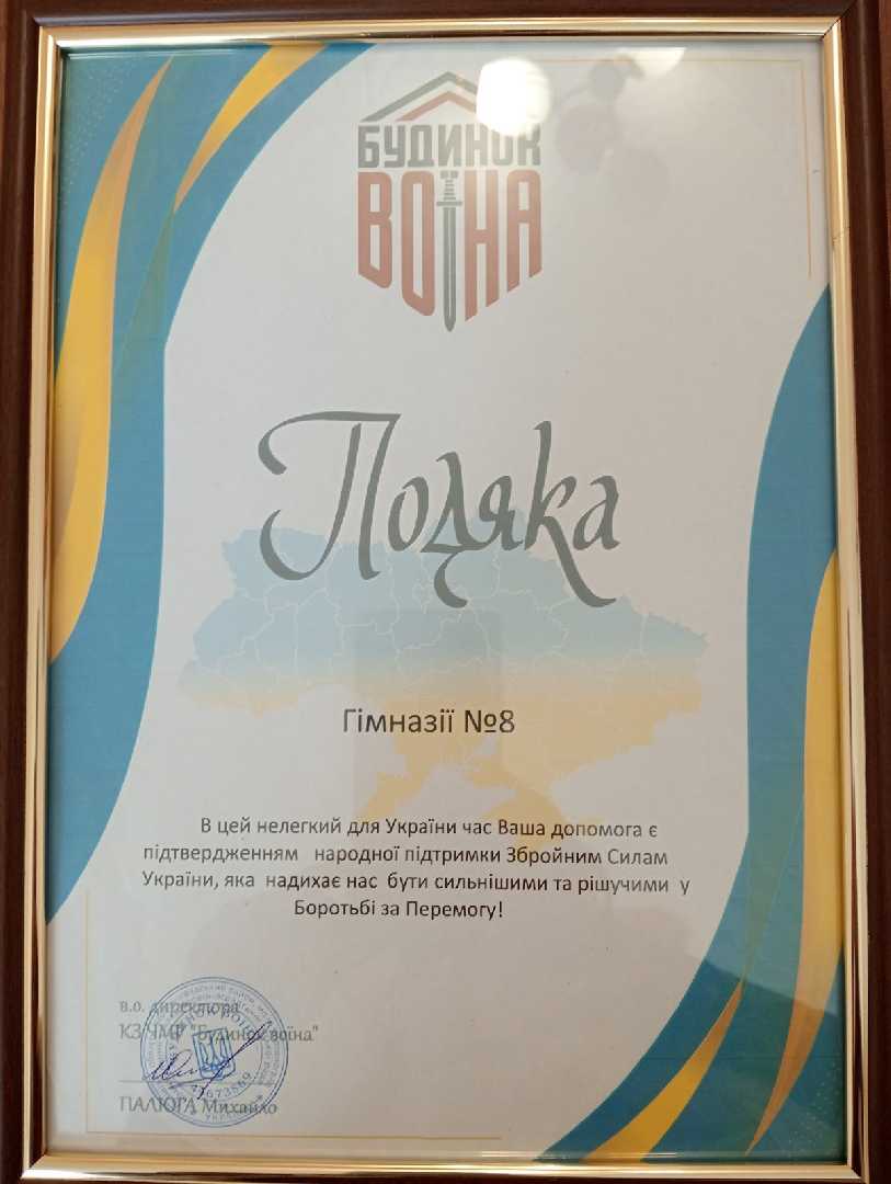 Сьогодні отримали приємний сюрприз від Будинку Воїна. Це подяка нашій гімназії за постійну допомогу Збройним Силам України. Для нас це дуже цінно і приємно! Разом до перемоги!