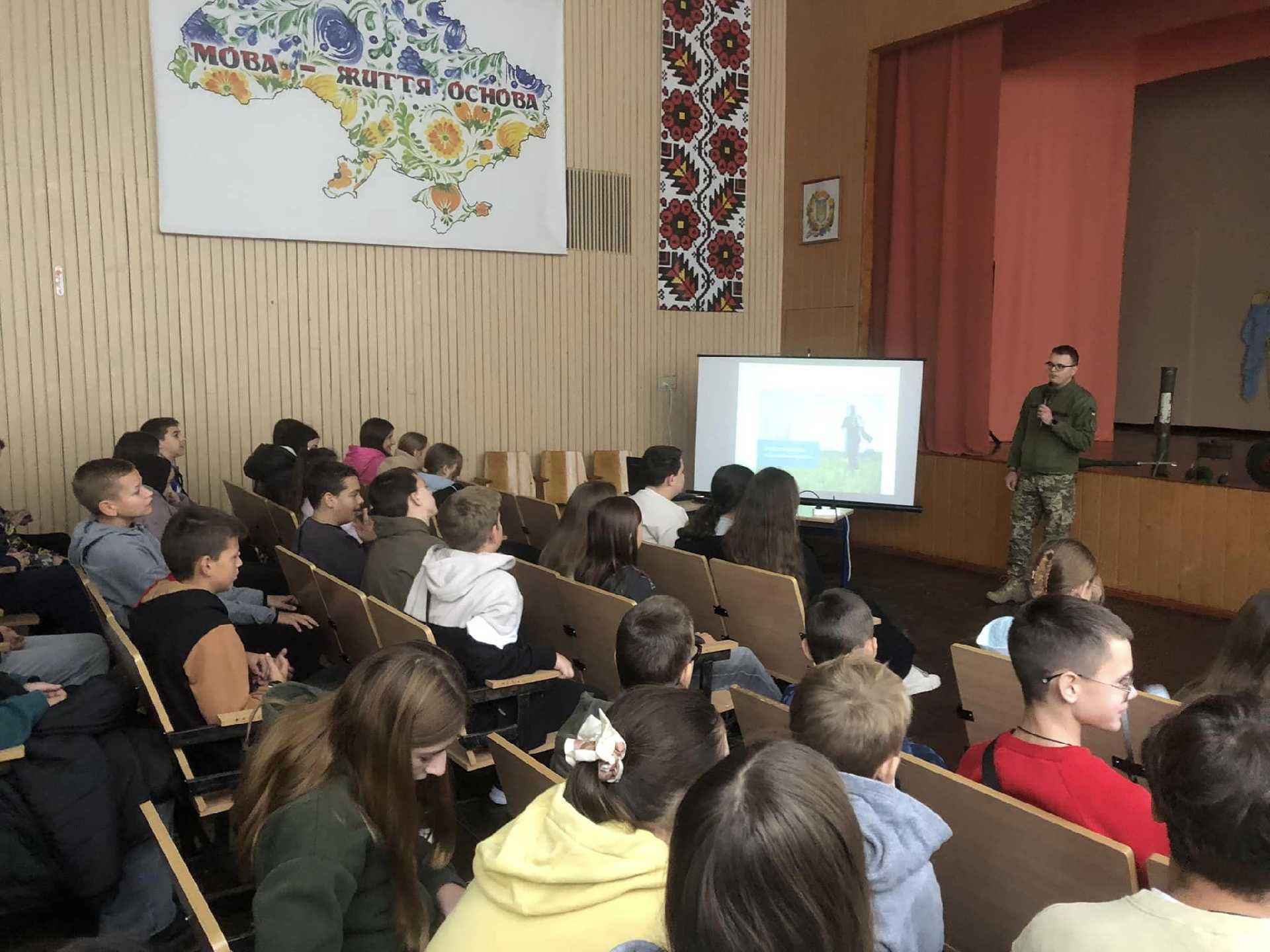 Мінна безпека: правила має знати кожен! Сьогодні офіцер цивільно-військового співробітництва Андрій Пельц провів заняття «Попередження ризиків від вибухонебезпечних предметів» для учнів 7 класів. Діти дізналися, як відрізняти вибухонебезпечні предмети, де вони можуть приховуватись, які знаки про них попереджають та яких правил безпечної поведінки необхідно дотримувась, якщо побачив міну чи боєприпаси.