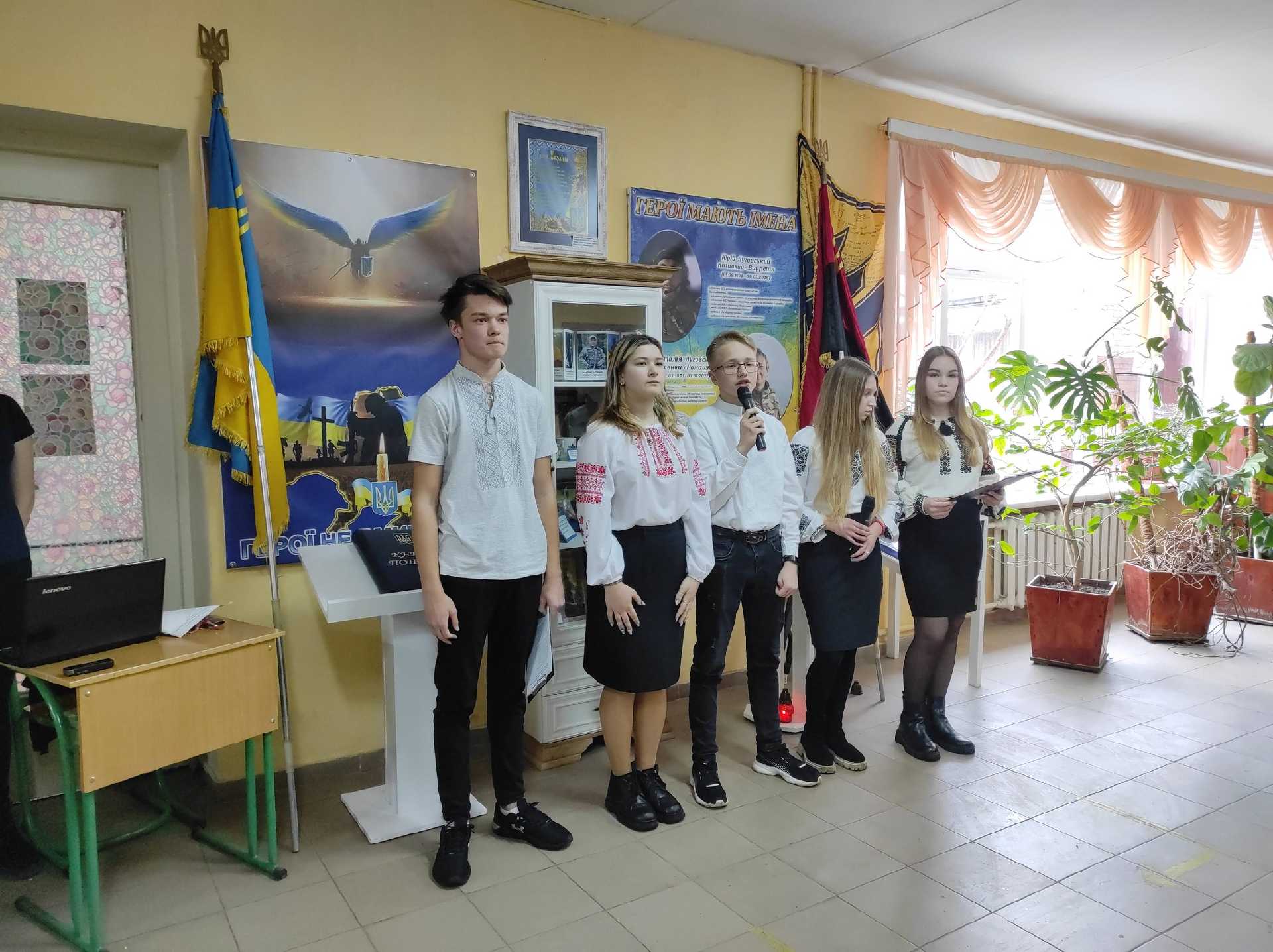 Учні навчального закладу розповіли історію короткого, але надзвичайно яскравого та героїчного життя воїна. Патріотичні пісні виконали учасники хору «Нескорені» Червоноградського братства ОУН-УПА. Із промовами до присутніх звернулися директор комунального закладу міської ради «Будинок воїна» Михайло Палюга, представники братства ОУН-УПА Андрій Пиріг та Оксана Білозір, а також директорка Гімназії імені родини Луговських Любов Денисюк.