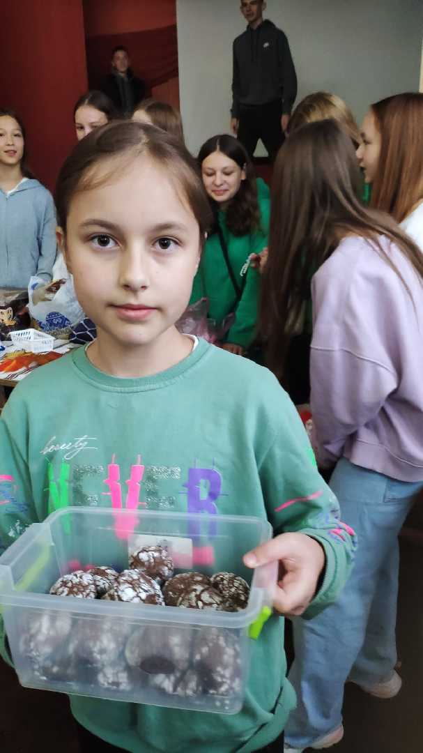На благодійному ярмарку продавалися різноманітні смаколики та власноруч виготовлені вироби. Серед запропонованого асортименту були з любов’ю приготовлені випічка та солодощі: тістечка, кекси, торти, трубочки та інші ласощі.