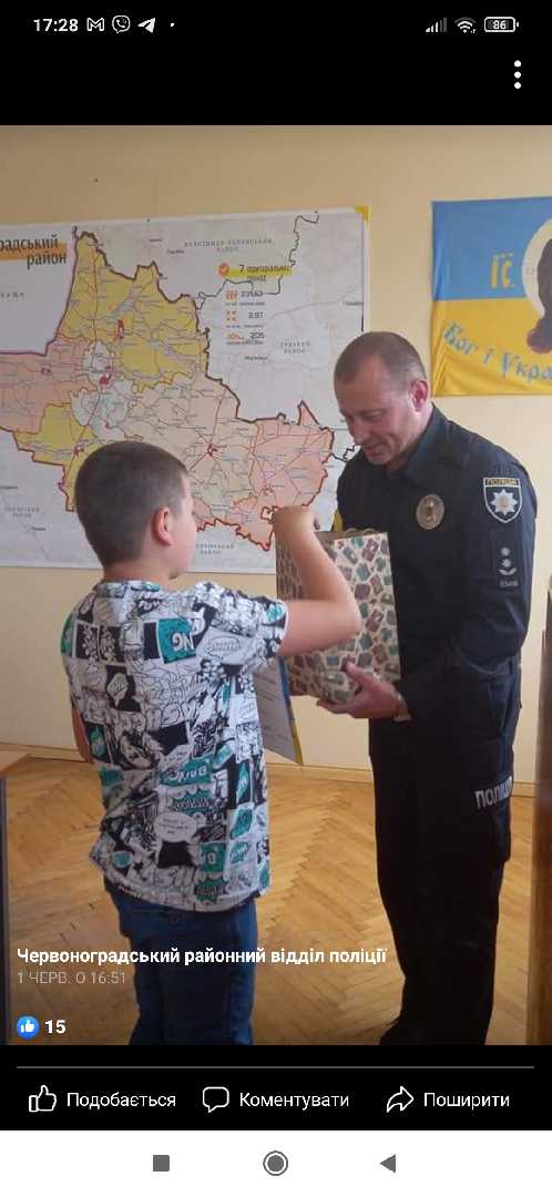 Наші діти взяли участь у конкурсі, який проводив Червоноградський районний відділ поліції. Двоє учнів були нагороджені подарунками та грамотами. Переможцями стали: Степанко Юстина (9 клас) та Процик Володимир (5 клас)