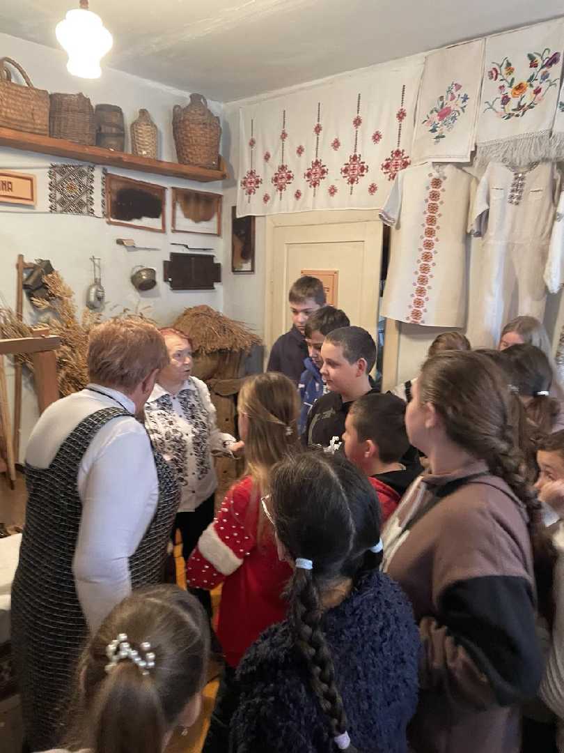 Упродовж грудня 2025 року у школі проходить місячник «Українські звичаї, традиції, обряди оживають». Відповідно до плану заходів, сьогодні учні 5-7 класів побували у селі Бишів Радехівської ТГ, бо там є унікальний шкільний музей українського народознавства. Відкритий з 1991 року. Усього п’ять залів. Особливі враження залишилися у нас від перегляду старовинних ікон. Завітали у хату галицького селянина, де горіла піч , а на столі ,у макітрі, – паляниця з маком. А скільки одягу у ткацькому цеху! Деякі ремесла побачили вперше. Господарі запросили нас на різдвяне дійство « Український святвечір»