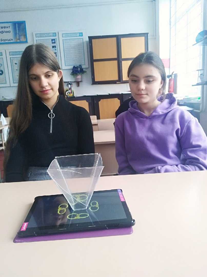 Вивчаючи тему "Світлові явища" на уроці фізики (вчитель Гук С.В.),учениця 9 класу Лялюк Олеся створила проєкт "Голограма".Учні вкотре переконалися,що фізика цікава, можна легко засвоїти матеріал ,якщо розкрити свої можливості.Олеся захопила своїм дослідженням і учнів молодших класів.