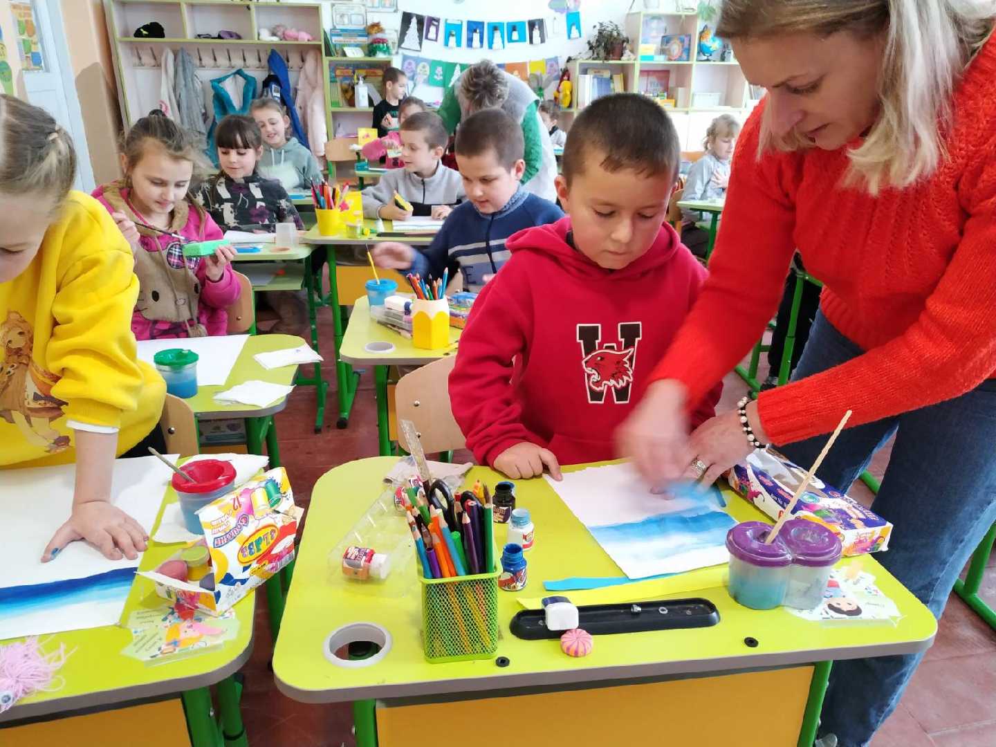 ще вчора провела для учнів 1- 4 класів Стельмащук Н.З.Тема: "Розважальні техніки малювання. Виконання пейзажу нетрадиційними матеріалами". Діти виконували творчу роботу за допомогою кухонної губки.Так цікаво пройшов другий день методичного тижня мистецтва"Природа - найкращий митець".
