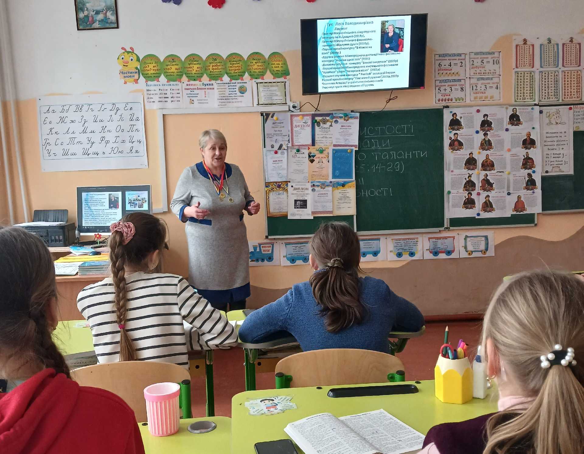 організувала Гук С.В. , вивчаючи із шестикласниками тему : Відомі особистості громади ( урок : Духовність і мораль в житті людини і суспільства). Леся Володимирівна Гук, вчитель початкових класів презентувала свої поетичні збірки. Учні дізналися про тематику поезій, про нагороди та відзнаки, а , головне, - почули живе слово автора.