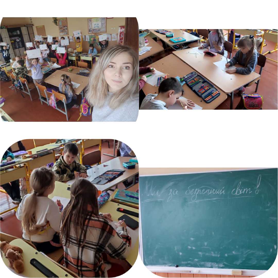 У межах проведення всеукраїнської акції "16 днів проти насилля", практичним психологом Чорненькою Оленою Іванівною було проведено годину спілкування з учнями 2 класу на тему "Ми за безпечний світ" . Метою даного заходу було: привернути увагу школярів до проблеми мирного співіснування на Землі;проблеми насильства над людьми; необхідності згуртування людства для досягнення миру; наголосити на важливість принципів, закладених в Декларації Генеральної асамблеї ООН про право народів на мир; ознайомити дітей з їх правами;формувати негативне ставлення до агресії, зла, ненависті; виховувати почуття взаємоповаги, толерантності, гуманності.