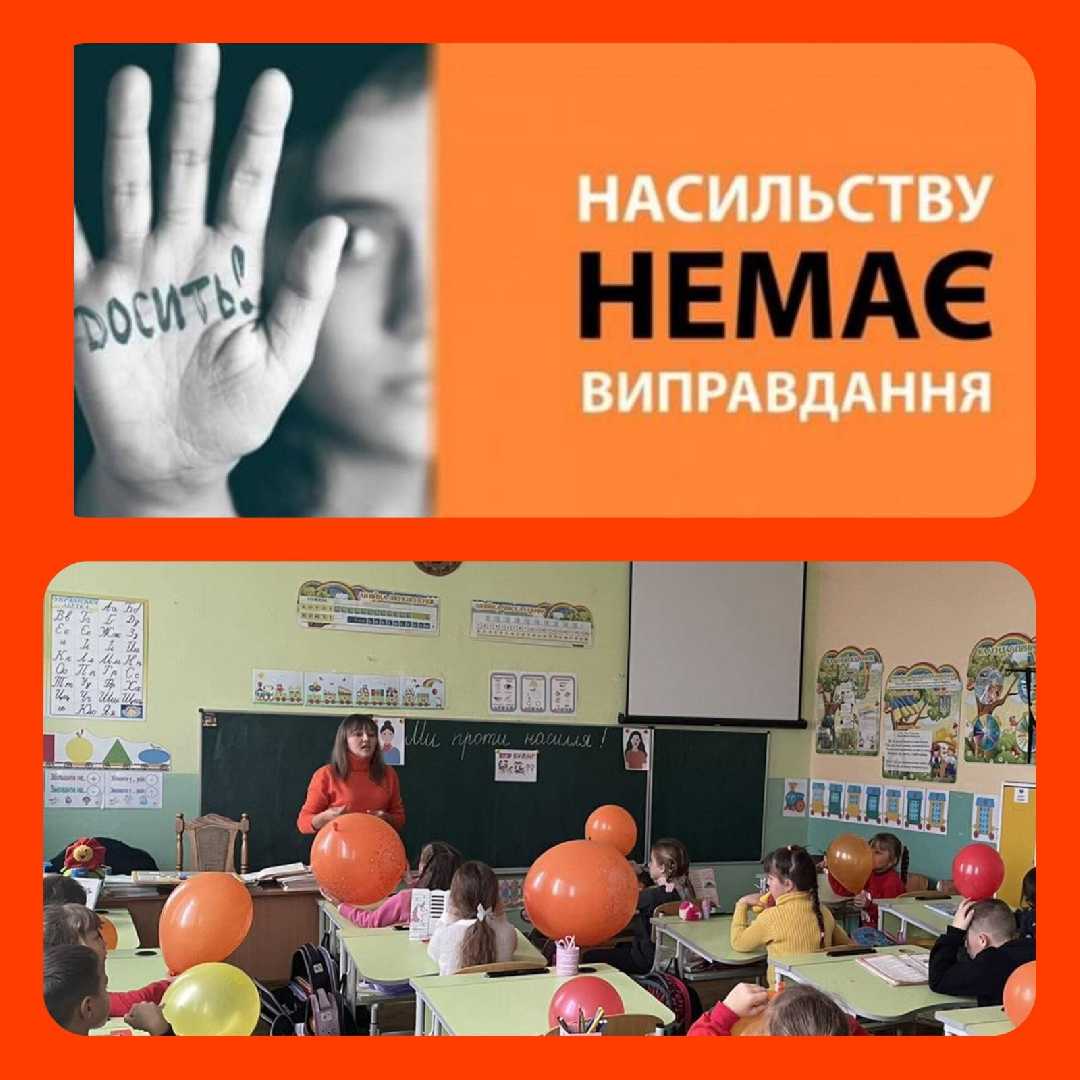 В рамках світової кампанії "16 днів проти насильства" учні 2-го класу долучились до вуличної акції "Нам не байдуже!" З ними була проведена бесіда практичним психологом Лесик О.А. щодо протидії різним видам насильства. Діти підтримали акцію, почепивши на подвір'ї помаранчеві повітряні кульки. Це офіційний колір протидії домашньому насильству, його ще називають "flamma amoris et caritatis" — полум'ям любові й милосердя. Він символізує вільне від жорстокості майбутнє????