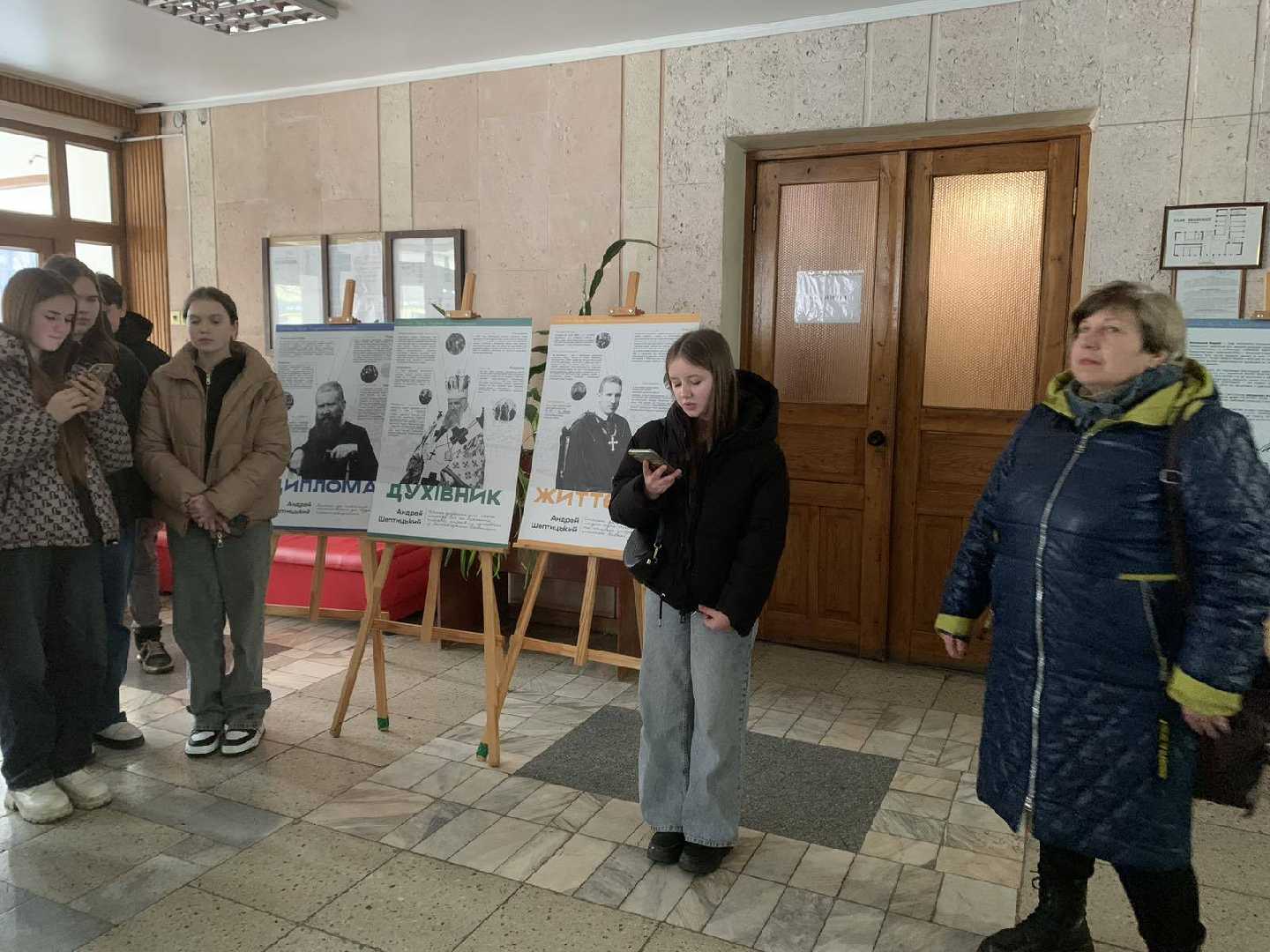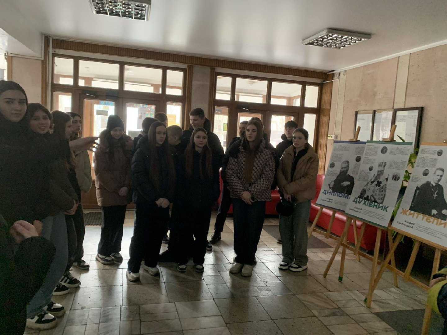 Сьогодні учні 8 класу разом з кл. кер. Запісоцькою Н. Р. і вчителем історії та хр. етики Гнатів С. Я. відвідали інформаційно-фотографічну виставку про предстоятеля української греко-католицької церкви, митрополита Андрея Шептицького.
