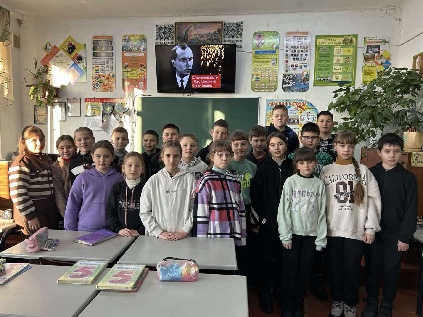 Степан Бандера – це Герой ХХ століття, людина-легенда, видатна постать у літописі історії України. Саме про життя і подвиги цієї мужньої людини була проведена тематична бесіда з учнями 5 класу « Степан Бандера- провідник ОУН»