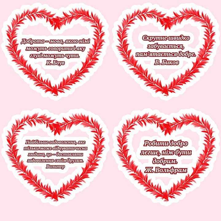 17 лютого - Всесвітній день спонтанного прояву доброти❤️ Практичним психологом була проведена бесіда з учнями 4 класу про важливість добра у світі.Цей день - це чудова нагода висловити вдячність оточуючим та безкорисливо зробити добро. Учні ділились своїм досвідом добрих справ, працювали над деформованими прислів'ями,виконували вправу "Комплімент другу", а також разом створили колективну книгу "Розфарбуй світ своєю добротою"???? ???? Усміхніться незнайомцю. ☕ Пригостіть друга чашкою чаю . ???? Допоможіть однокласнику з навчанням. ???? Скажіть вчителю чи батькам щире «дякую». ???????? Підтримайте добрим словом чи донатом наших захисників. ???? Нагодуйте безпритульну тваринку. ???? Насипте зерна в годівничку для пташок. Робіть добрі справи!????