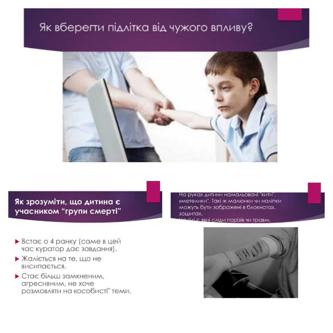 Впродовж останніх років в соціальних мережах з’являються небезпечні ігри для підлітків, такі як: «Синій кит», «Рожева фея»,«Вдар та біжи», «Піди з дому на 24 години», метою яких є маніпуляція психікою дітей, провокація їх до поганих вчинків, дитячого тероризму, булінгу та суїциду.????