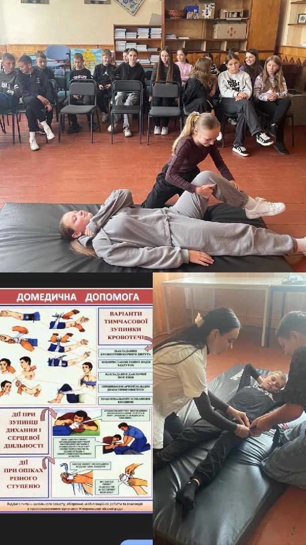 13 вересня — Всесвітній день надання першої медичної допомоги. Для учнів 7–8 класів у нашій гімназії було проведено практичний тренінг «Врятуй себе і товариша». Медична сестра Іванкевич А.С. ознайомила дітей з основними правилами надання першої допомоги та продемонструвала покроковий алгоритм дій у надзвичайних ситуаціях. Учні не лише уважно слухали, а й мали можливість попрактикуватися: як перевірити свідомість, дихання, викликати швидку допомогу, накласти пов’язку чи надати допомогу при непритомності. Такі заняття формують відповідальне ставлення до життя та здоров’я.