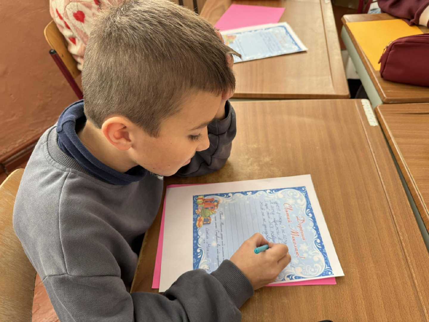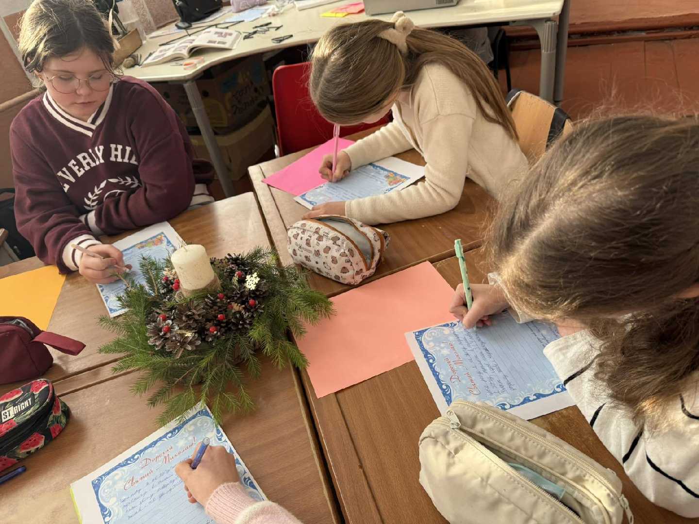 На уроці образотворчого мистецтва учні 5 класу разом із Запісоцькою К. Д. писали листи до Святого Миколая. Найчастіше прохання - мир для України. Дитячі мрії - найголовніші